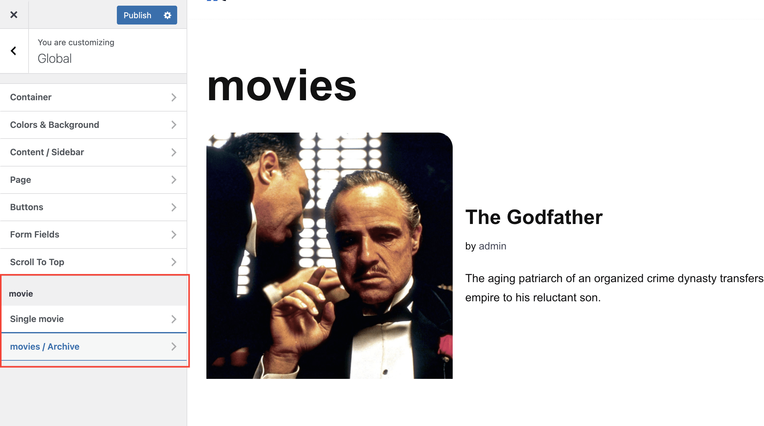 4. Also, similar options are available in Appearance > Customize > Global.