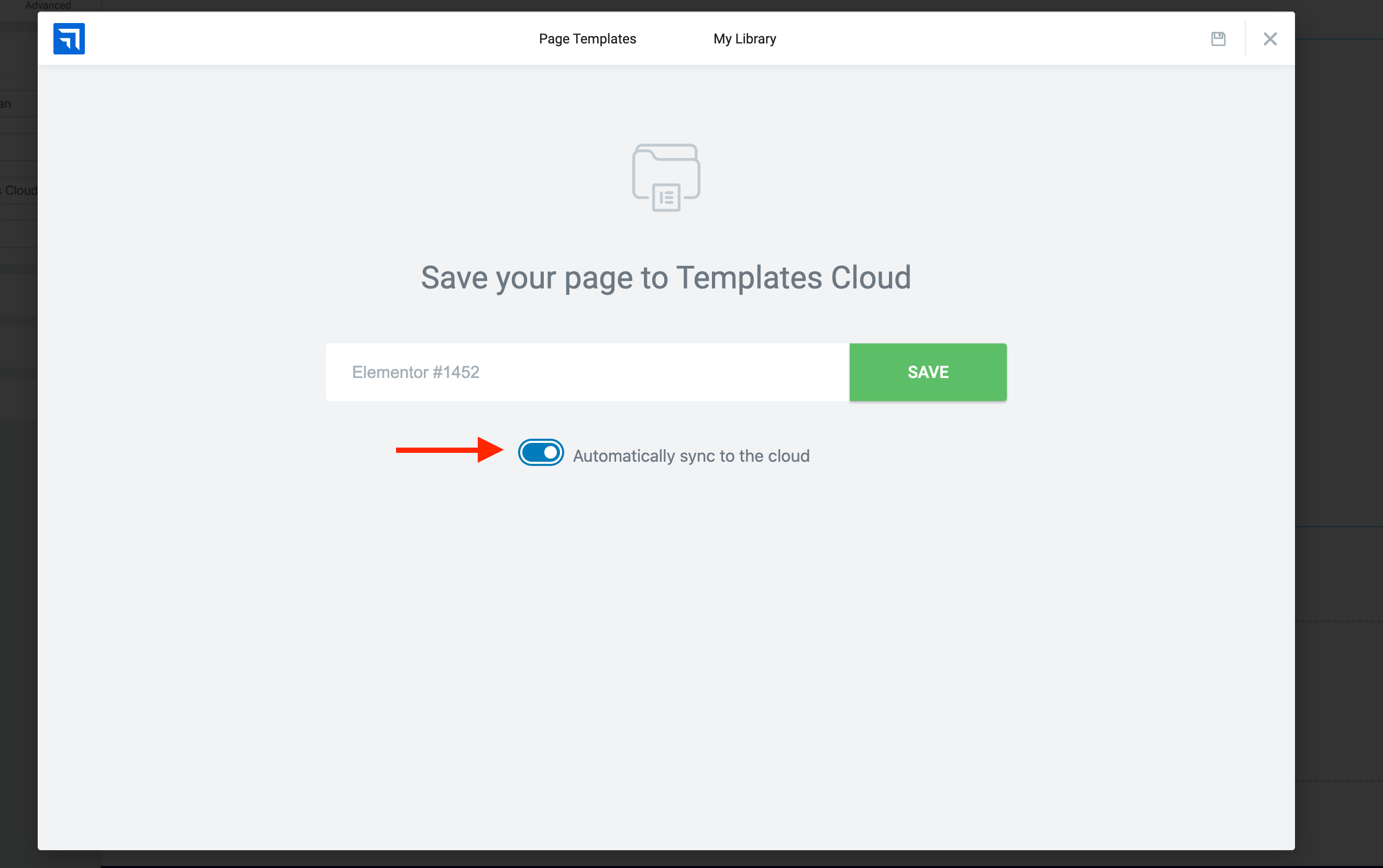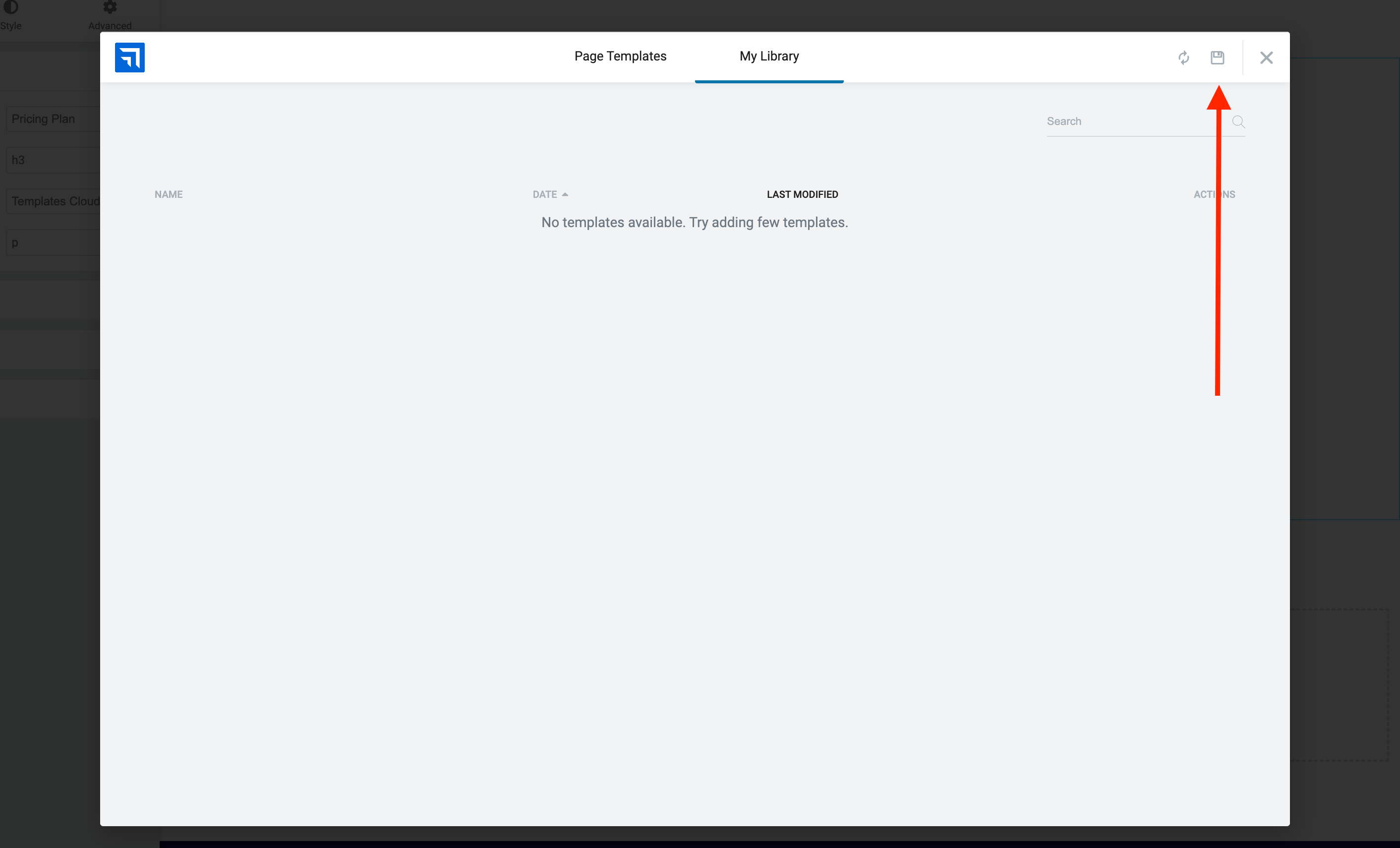 4 This Templates Cloud modal will appear; click the saving icon from the right corner.