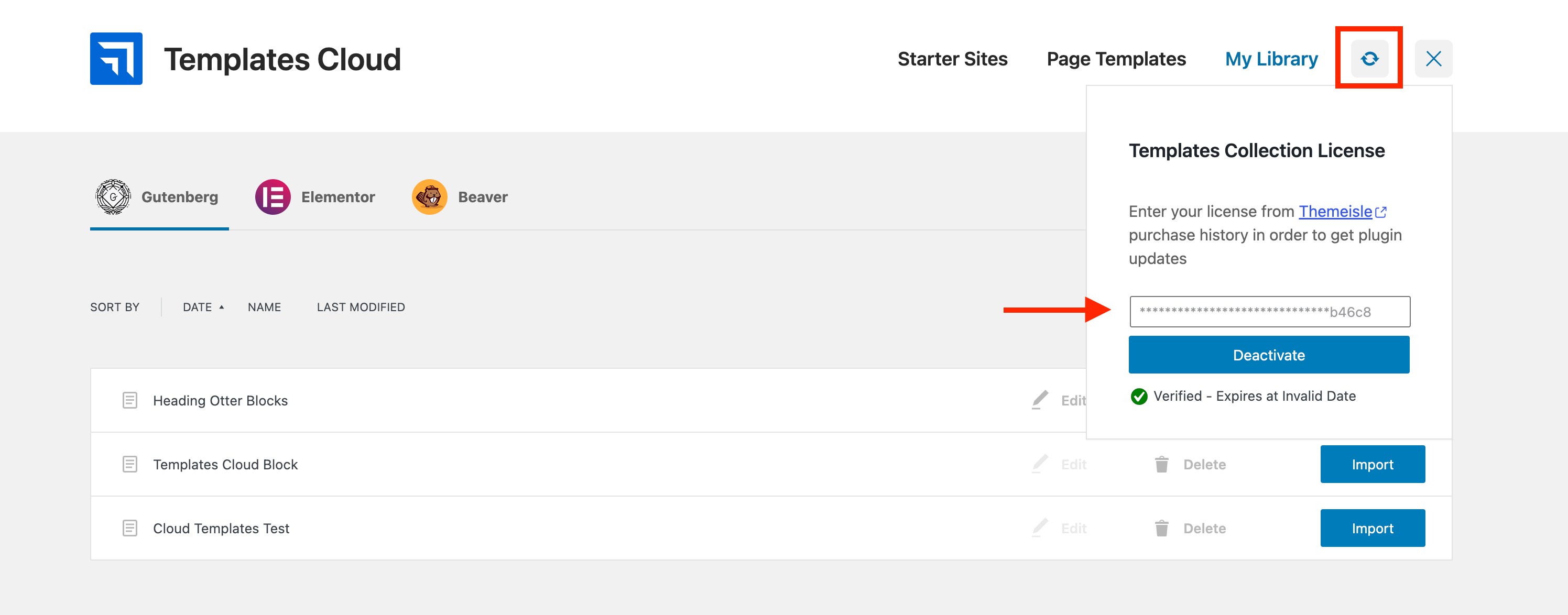 5 Now Navigate to Appearance > Template Cloud, enter your license key and click the Activate button.