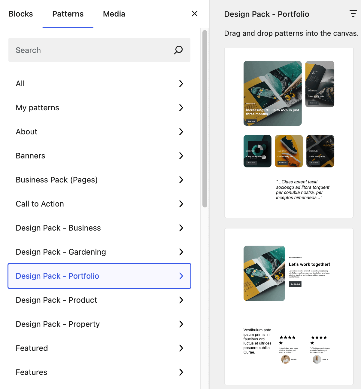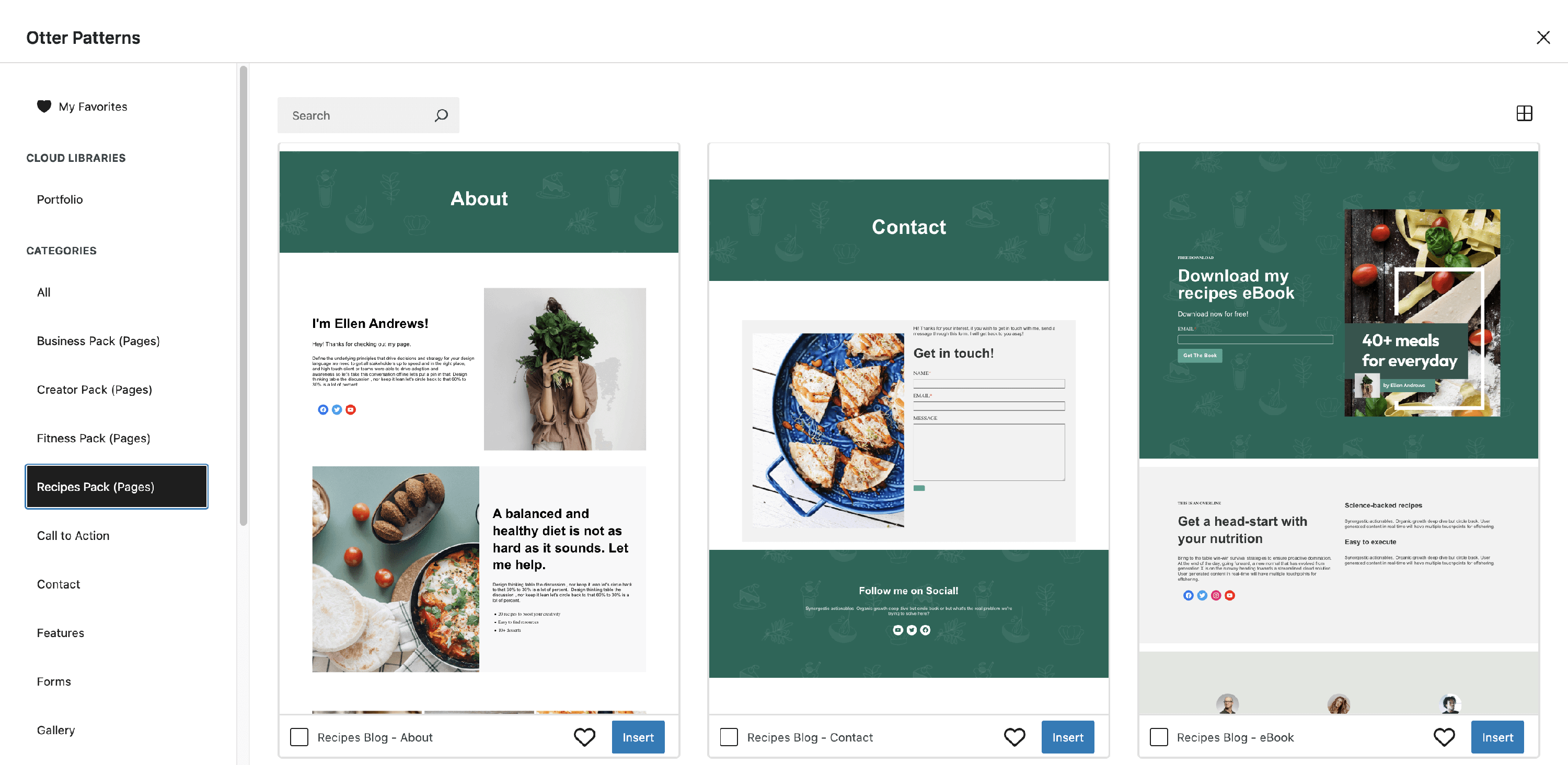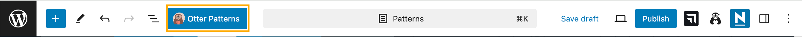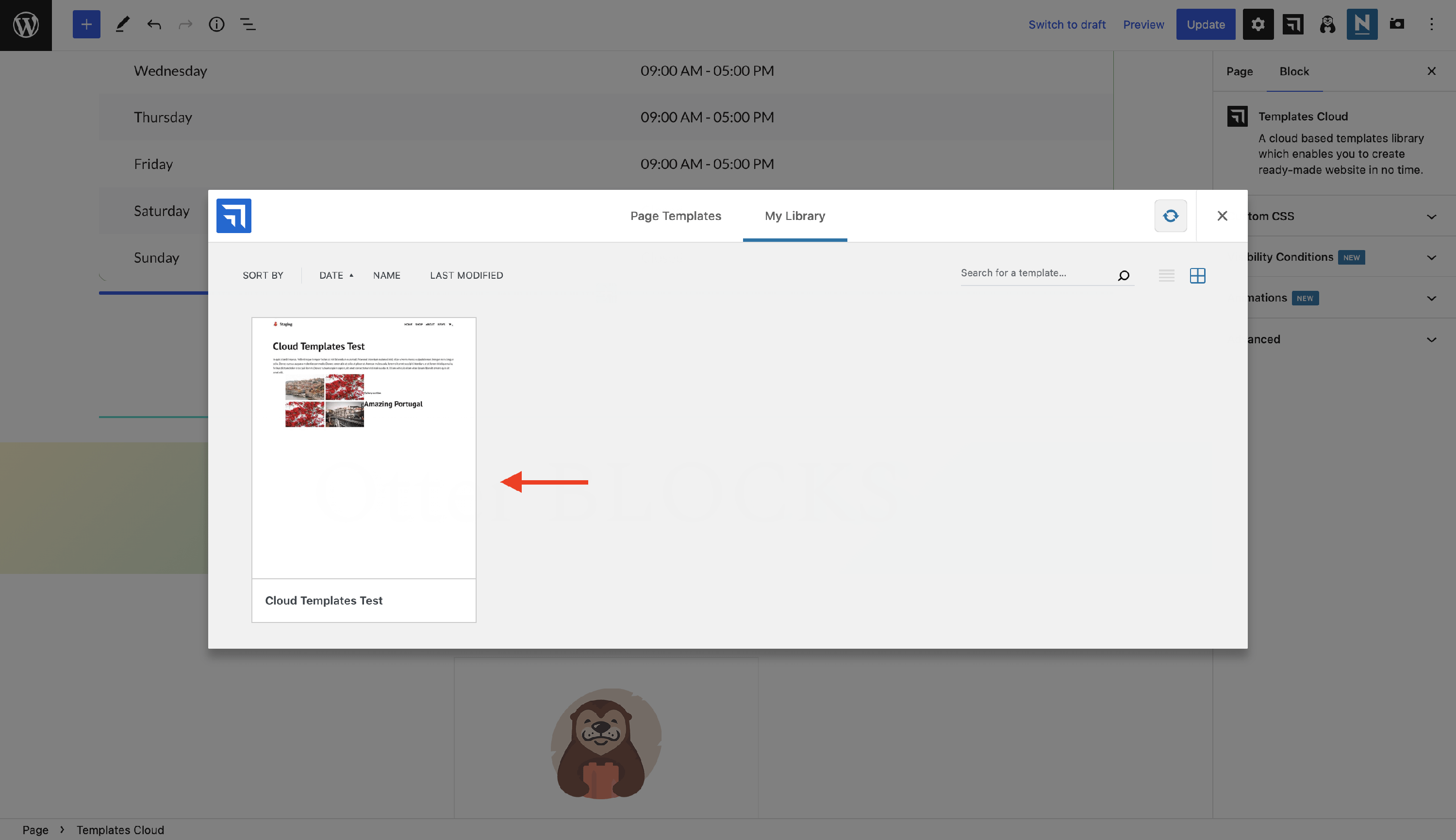 Open the dedicated modal to access all your Cloud patterns and explore a wide range of ready-made templates available through the Otter Blocks plugin. Just click the Otter Patterns button at the top of the editor to get started.