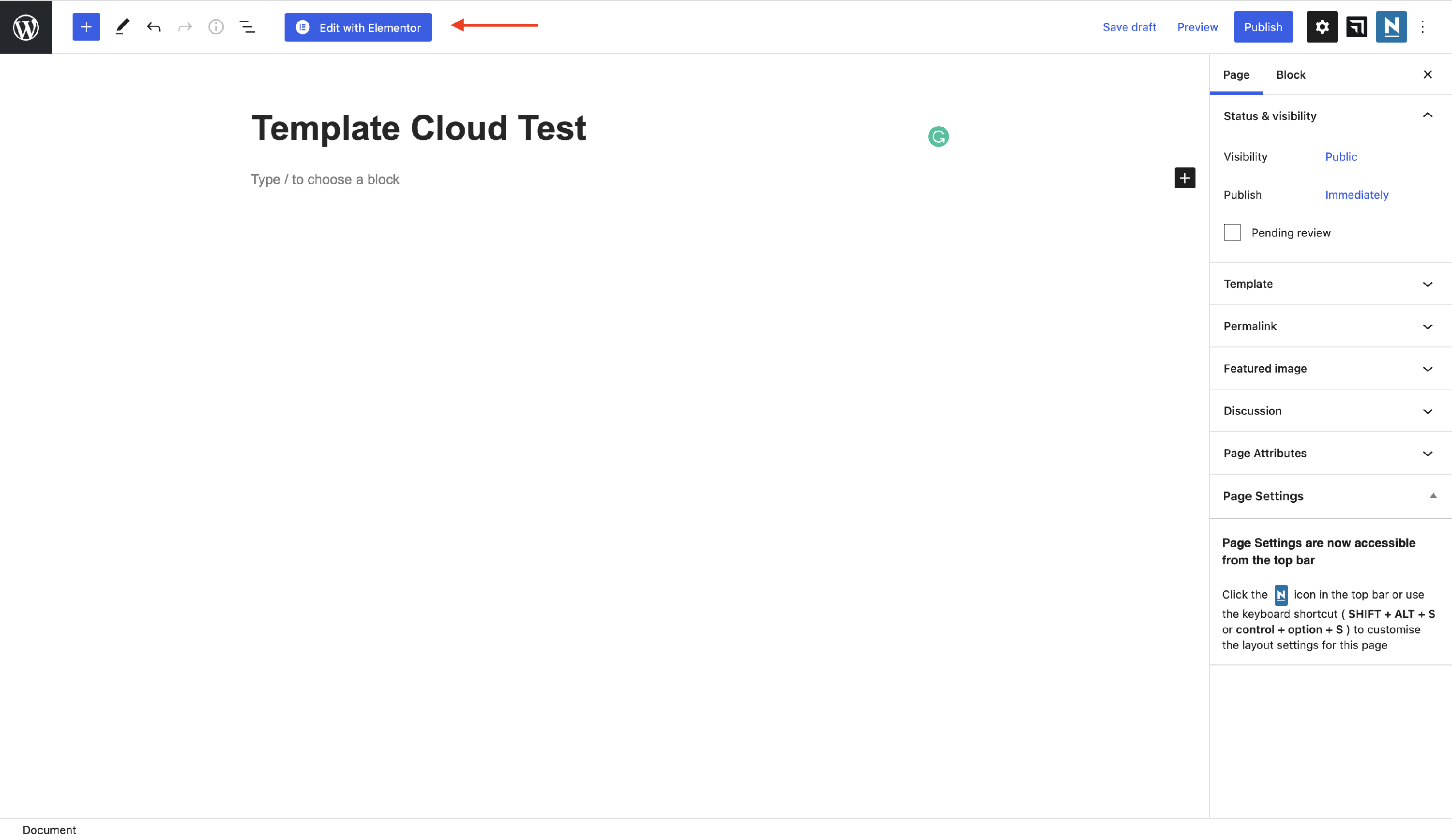 1 Create a new page and click on Edit with Elementor.
