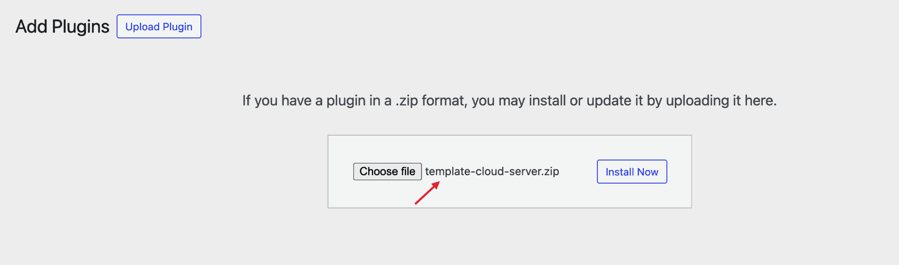 4 Upload the zip of the Template Cloud plugin and Activate it.