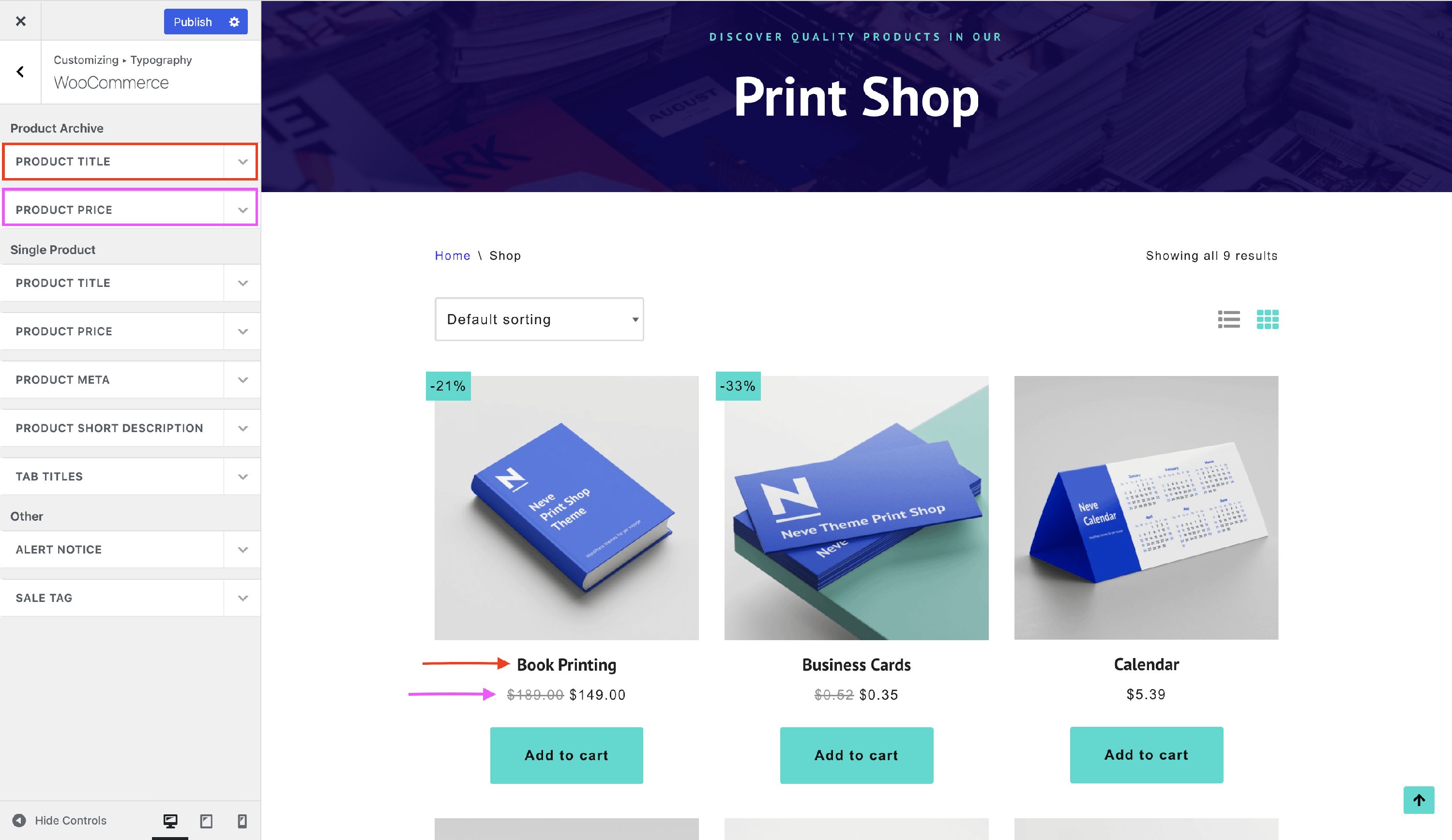 📝 Hinweis: Die Optionen in diesem Kapitel sind nur verfügbar, wenn das WooCommerce Booster-Modul aktiviert ist. Dieses ist in den Neve Pro Business- und Agency-Paketen enthalten.