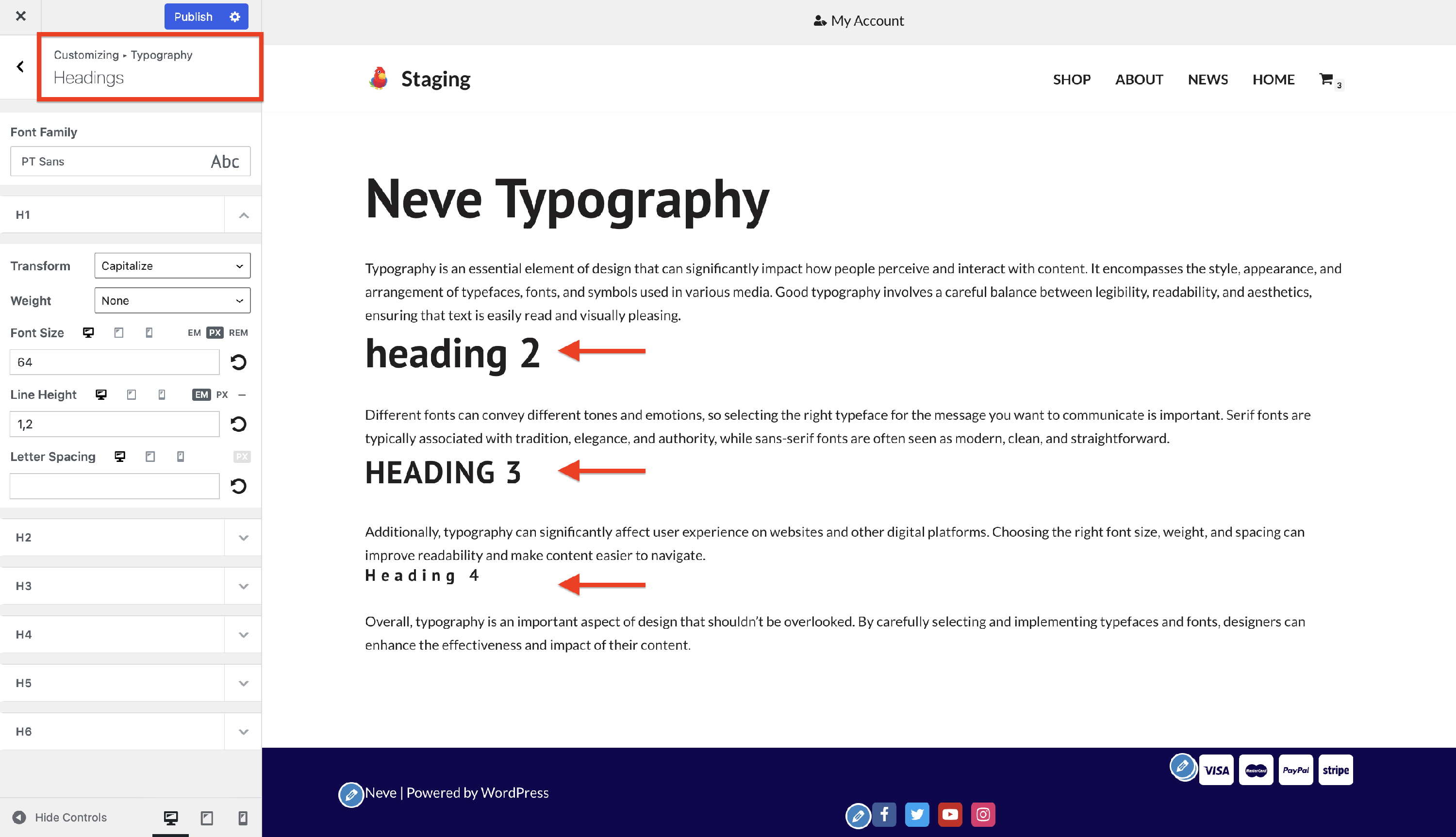In diesem Leitfaden finden Sie Informationen zu den Schriftmechaniken von Neve, einschließlich des Prozesses zur Änderung von Schriftarten, der Auswahl von Schriftfamilien, der Anpassung von Schriftgrößen und der Erkundung zusätzlicher Typografie-Funktionen.