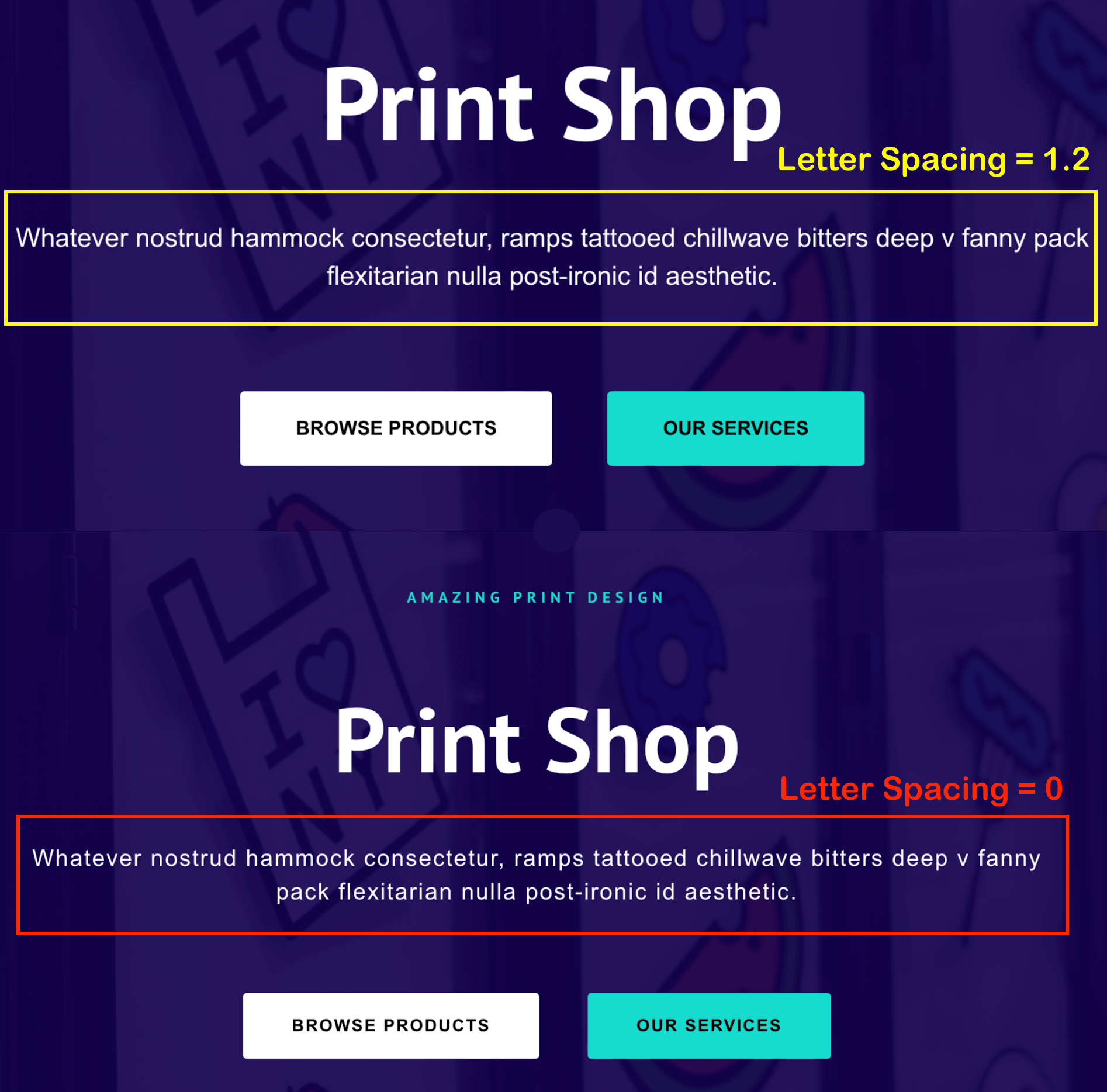 - Buchstabenabstand – numerischer Wert in Pixel.