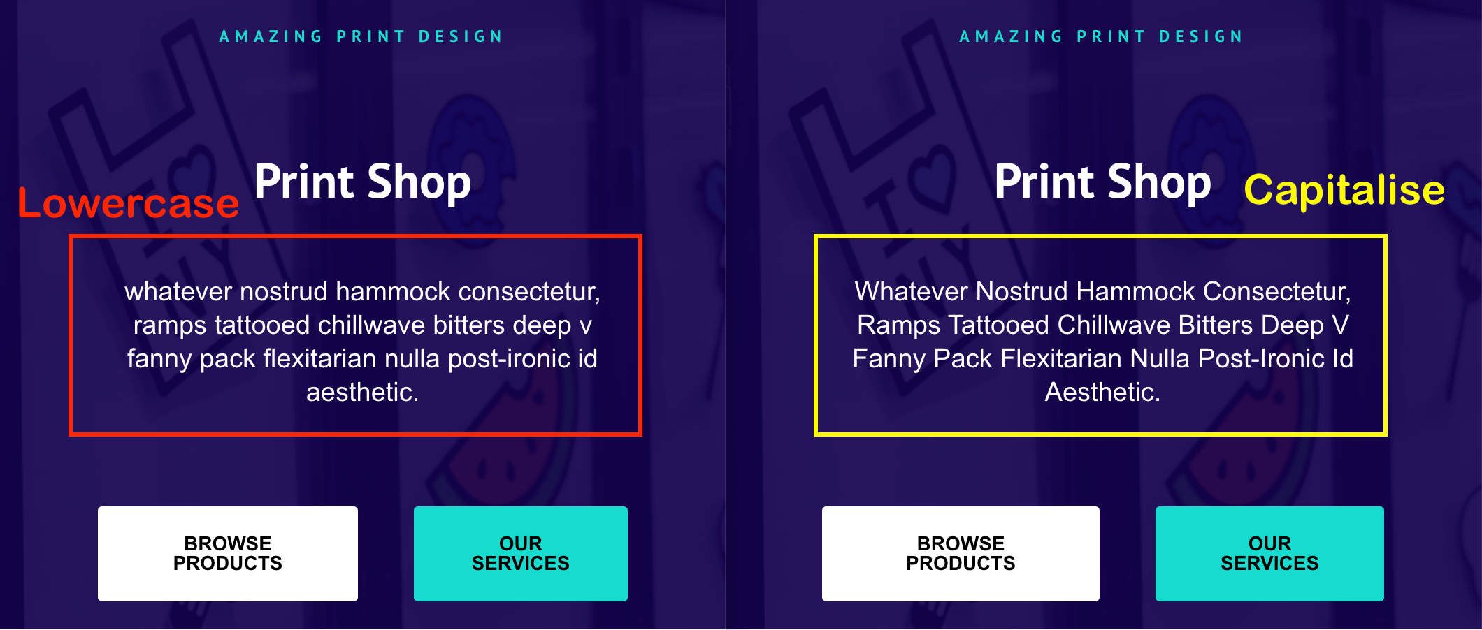 - Texttransformation – keine | Großschreibung | Kleinbuchstaben | Großbuchstaben.