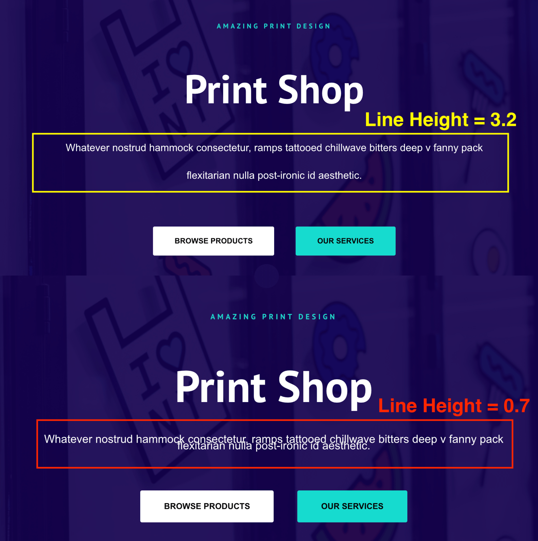 - Zeilenhöhe – numerischer Wert in EM, PX oder – (dies bedeutet, dass untergeordnete Elemente, die eine andere Schriftgröße angeben, diesen Wert erben).