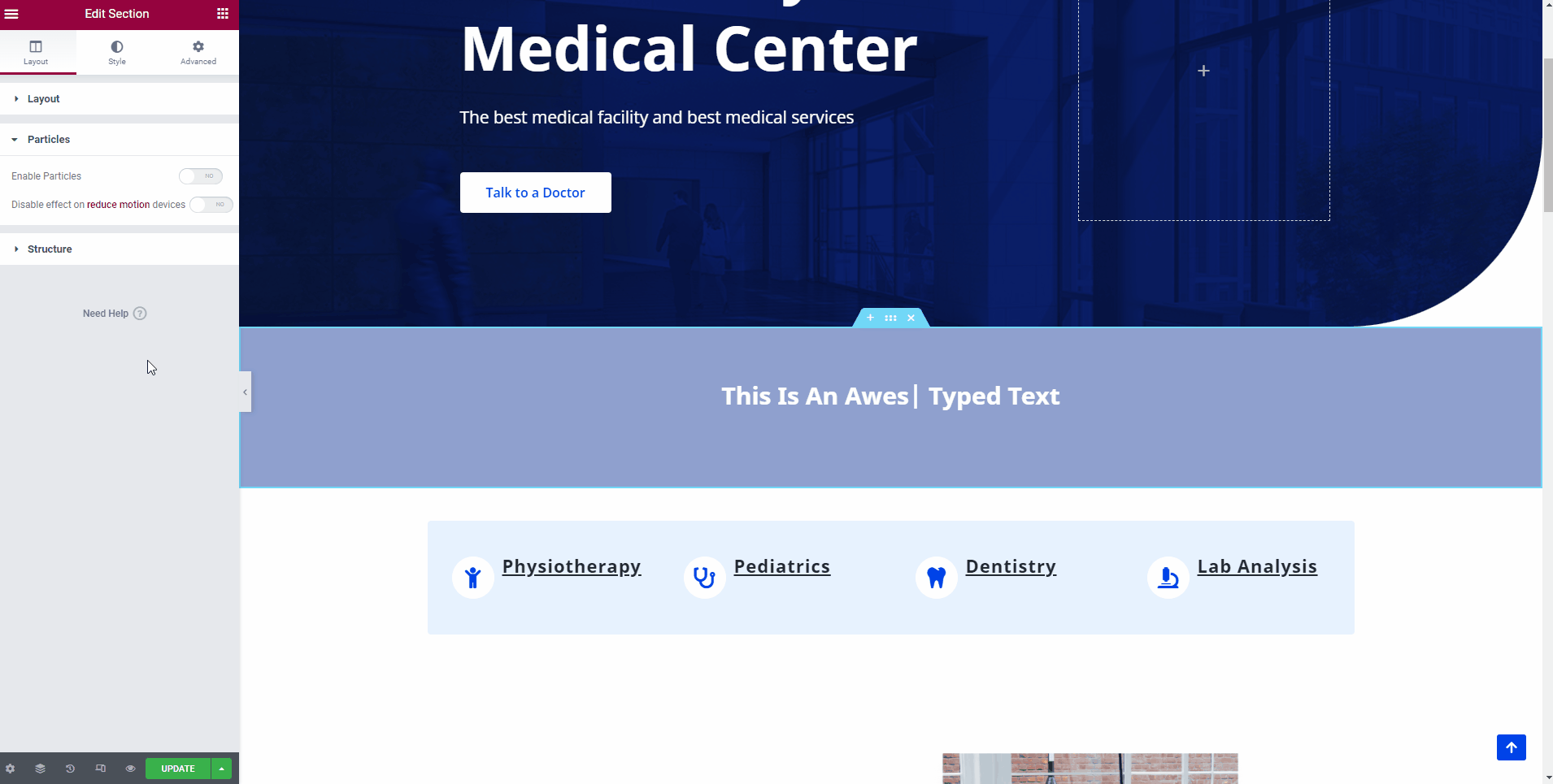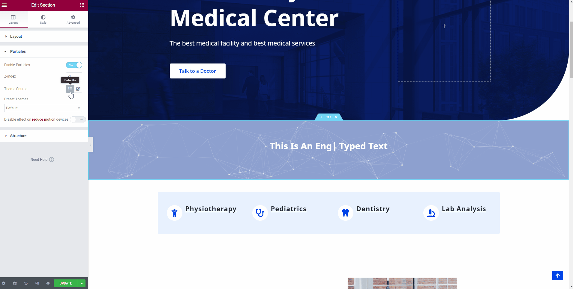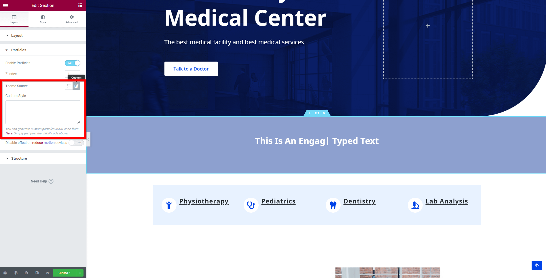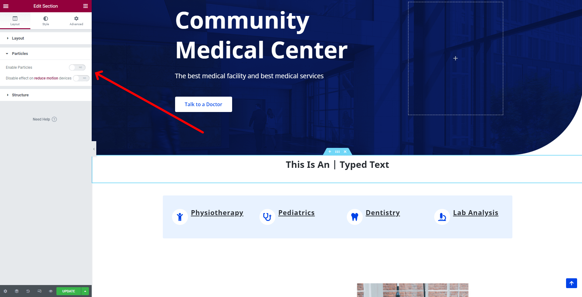 📝 Note: You can find the Particles tab in every Elementor section's Layout tab.