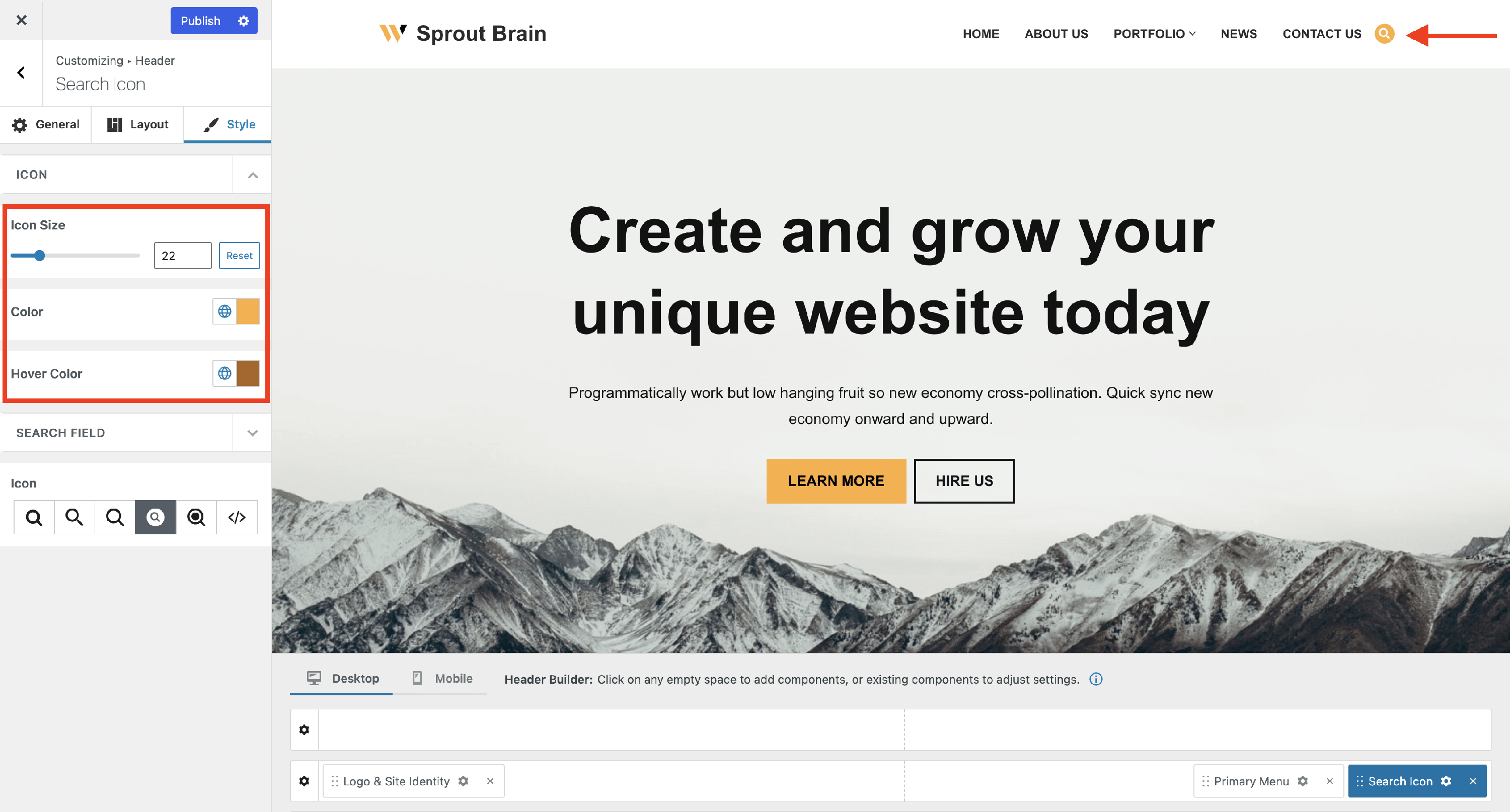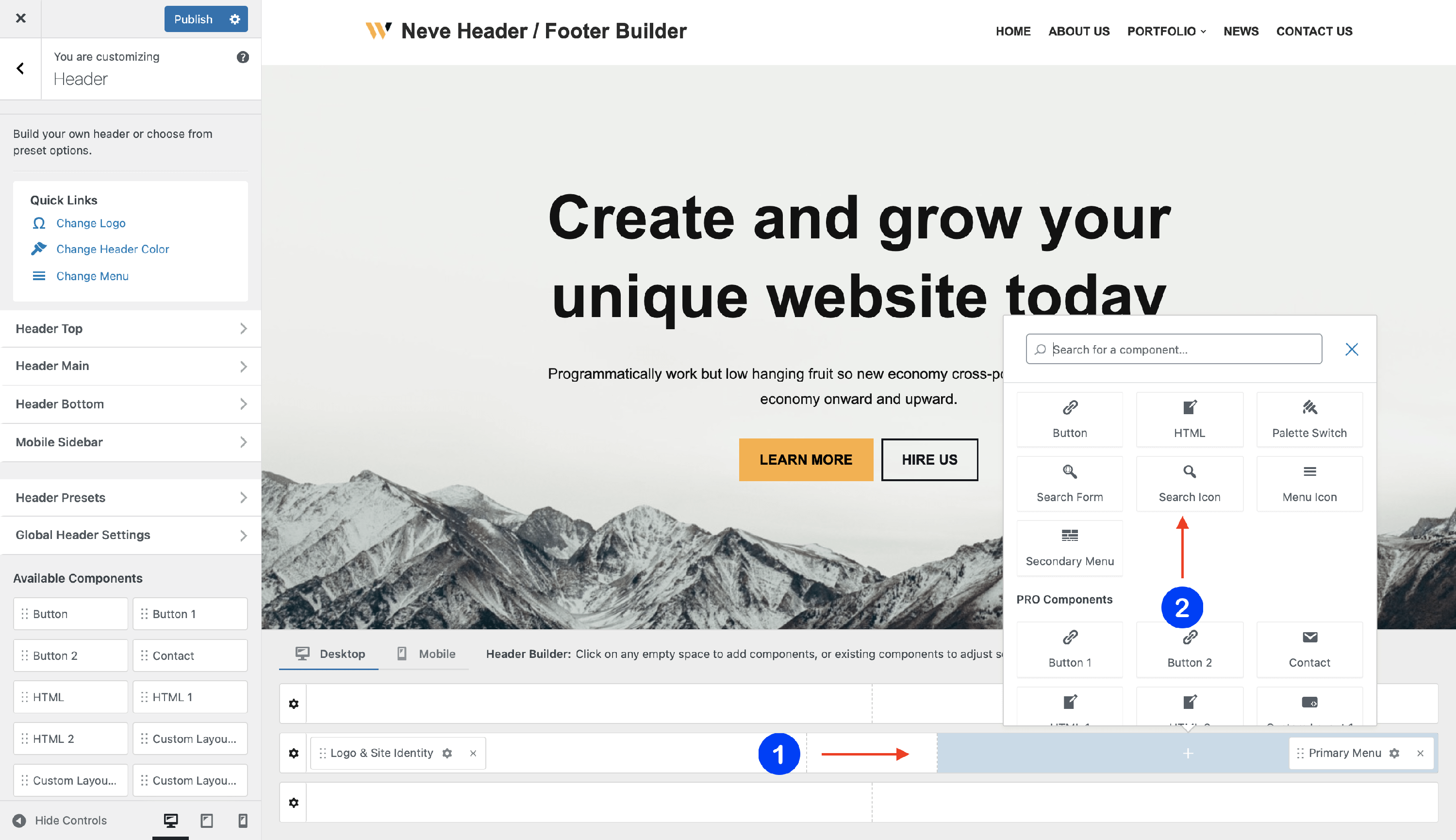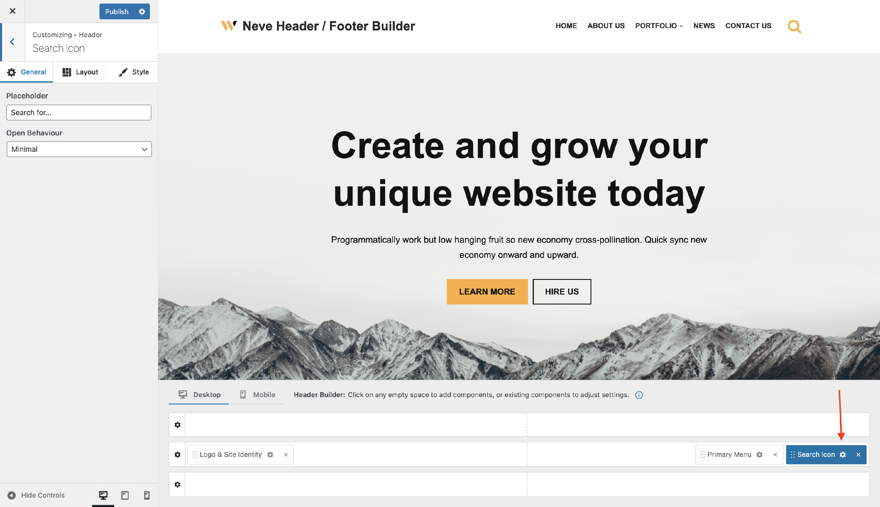 The Search Icon Component - Neve Header / Footer Builder