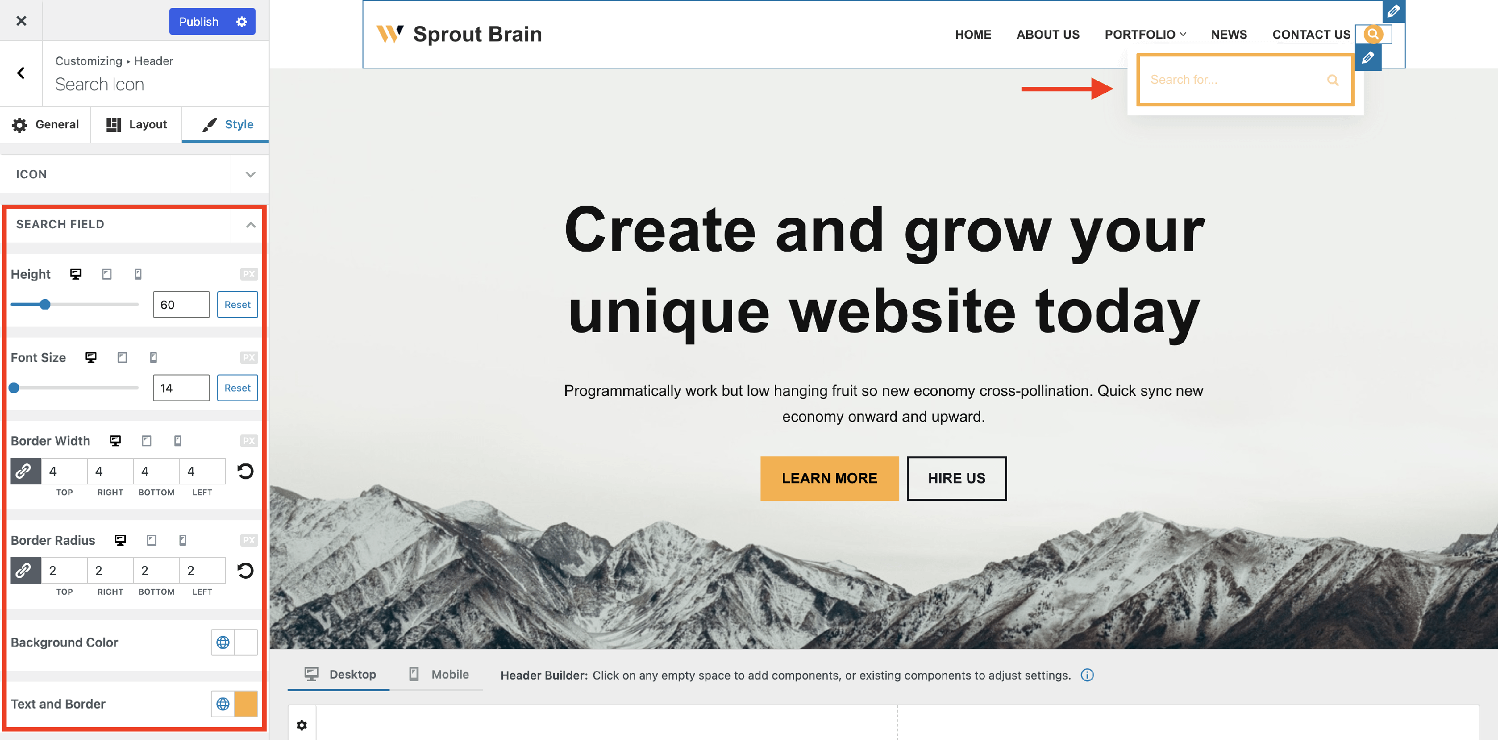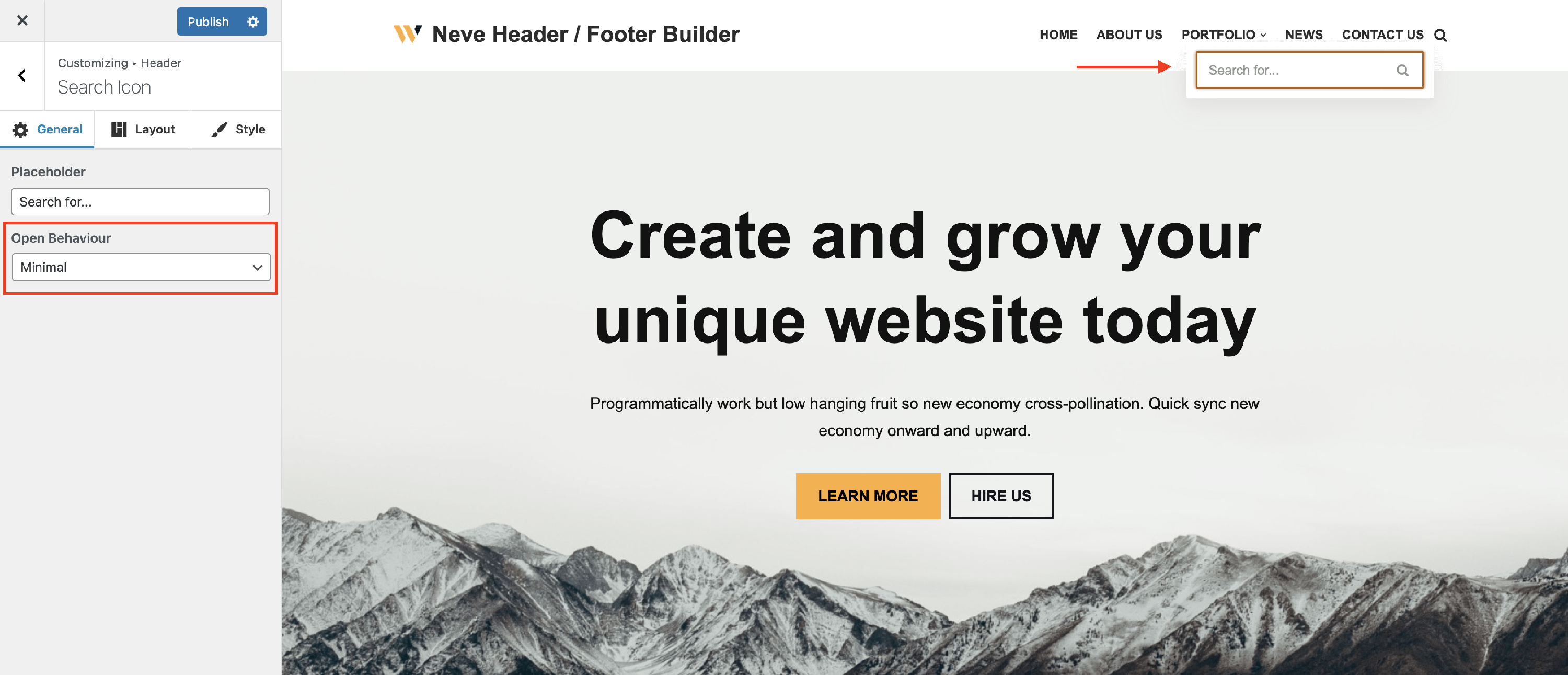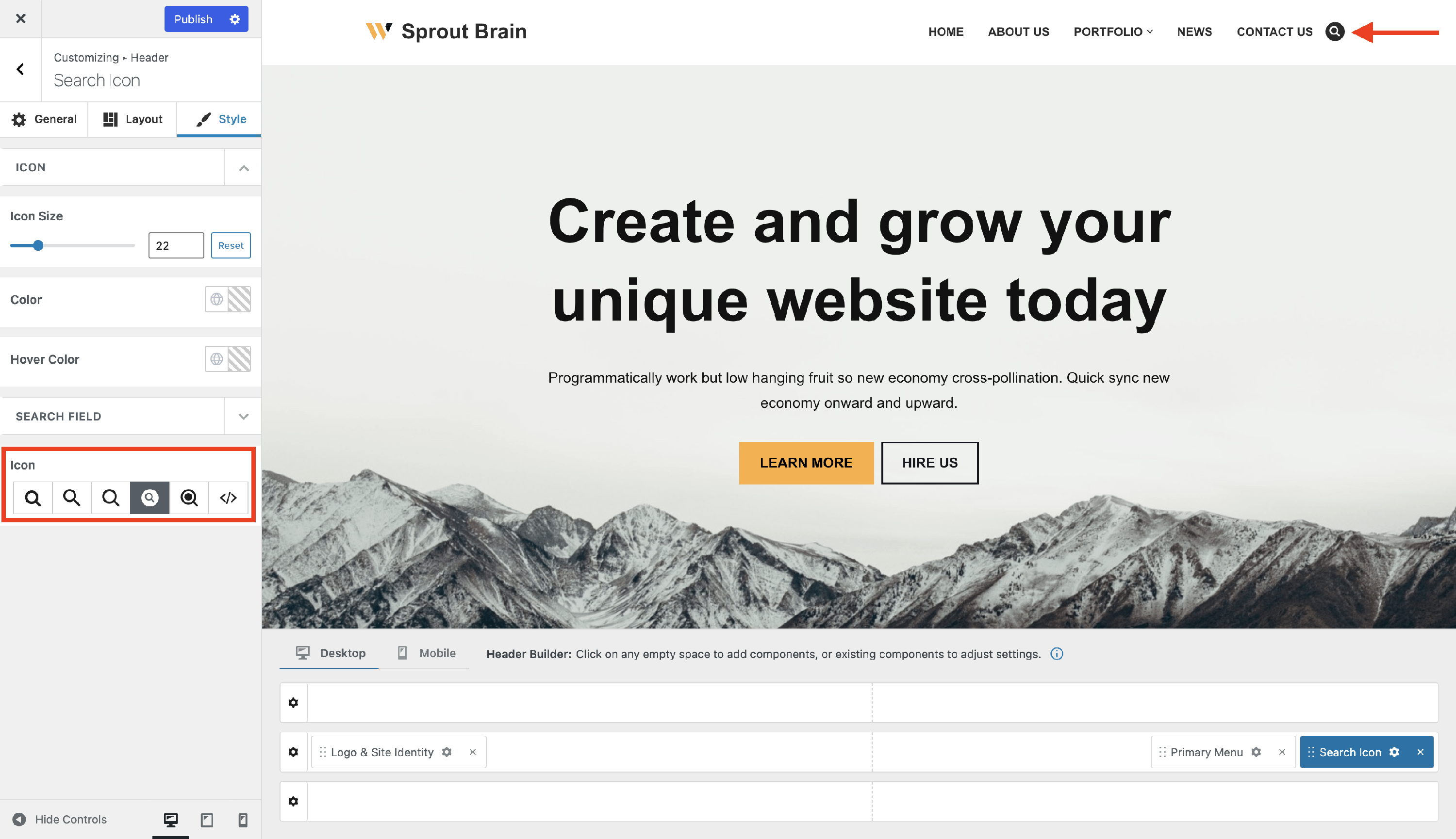 The Search Icon Component - Neve Header / Footer Builder