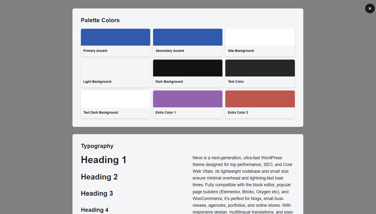 - Global Colors in Neve — Create and manage site-wide color palettes that apply across all elements.