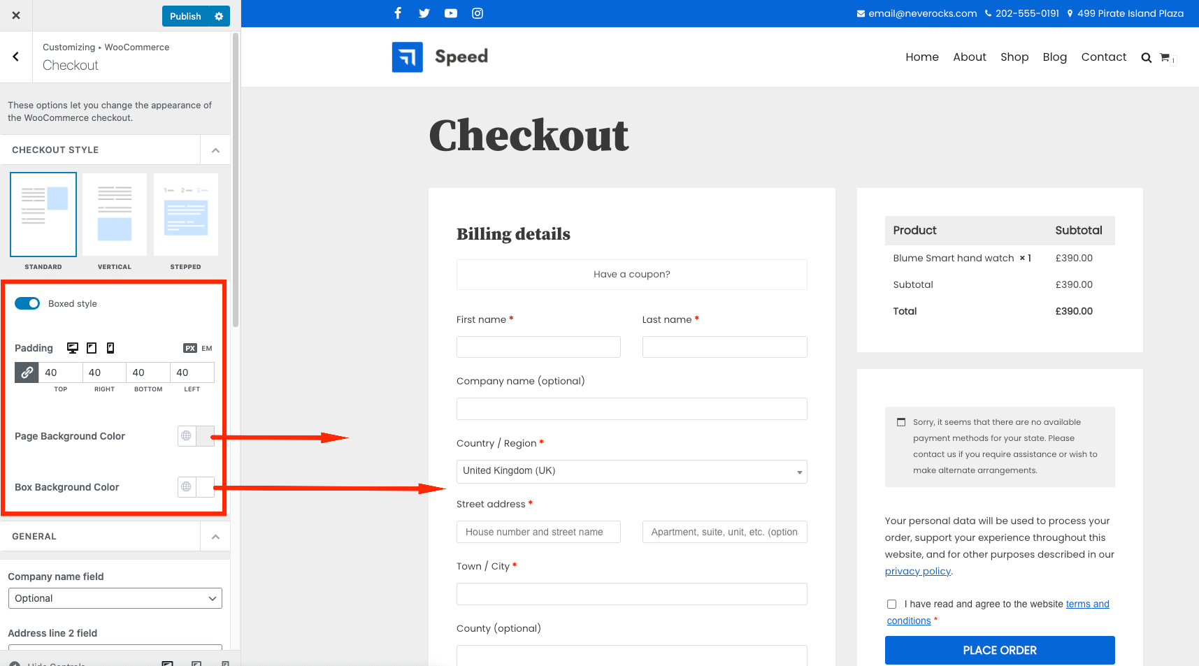 Set a page background color, tables' background color, and tables' padding. | - | Yes | |