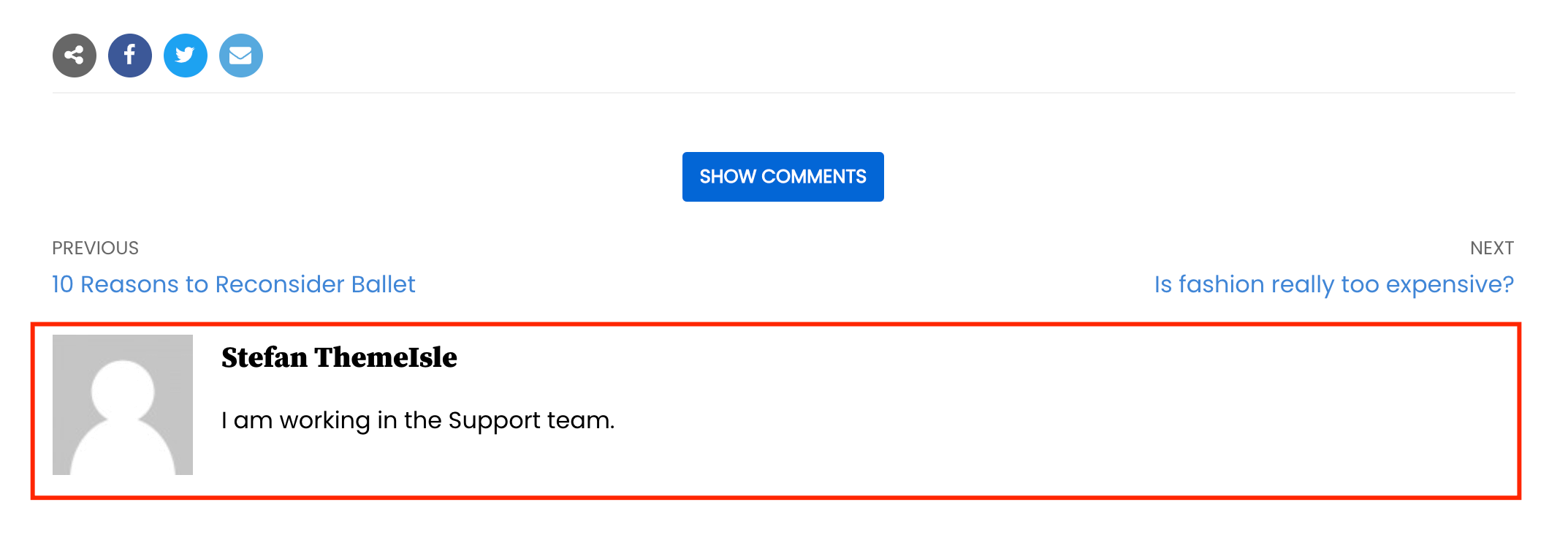 | Social Icons ComponentThis component allows you to add social media buttons (Facebook, Twitter, Youtube, Instagram) to the site footer. | ||