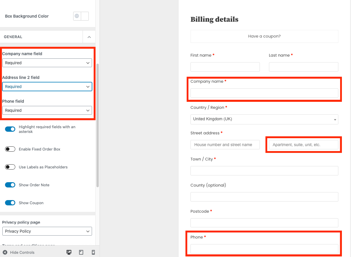 Customize some of the fields by making them optional, required, or disabled. | - | Yes | |