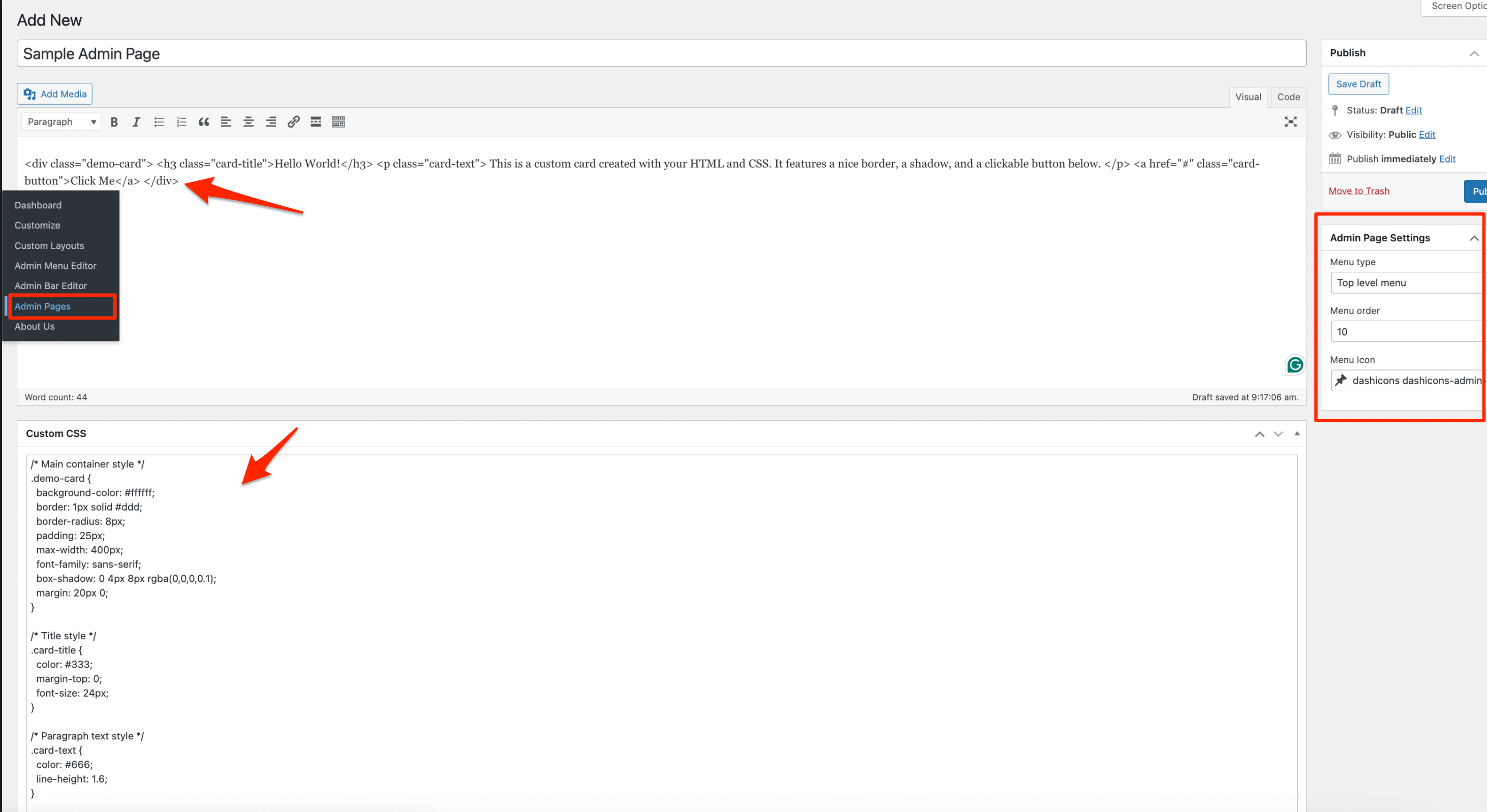 This feature allows users to create custom admin pages directly within WordPress.