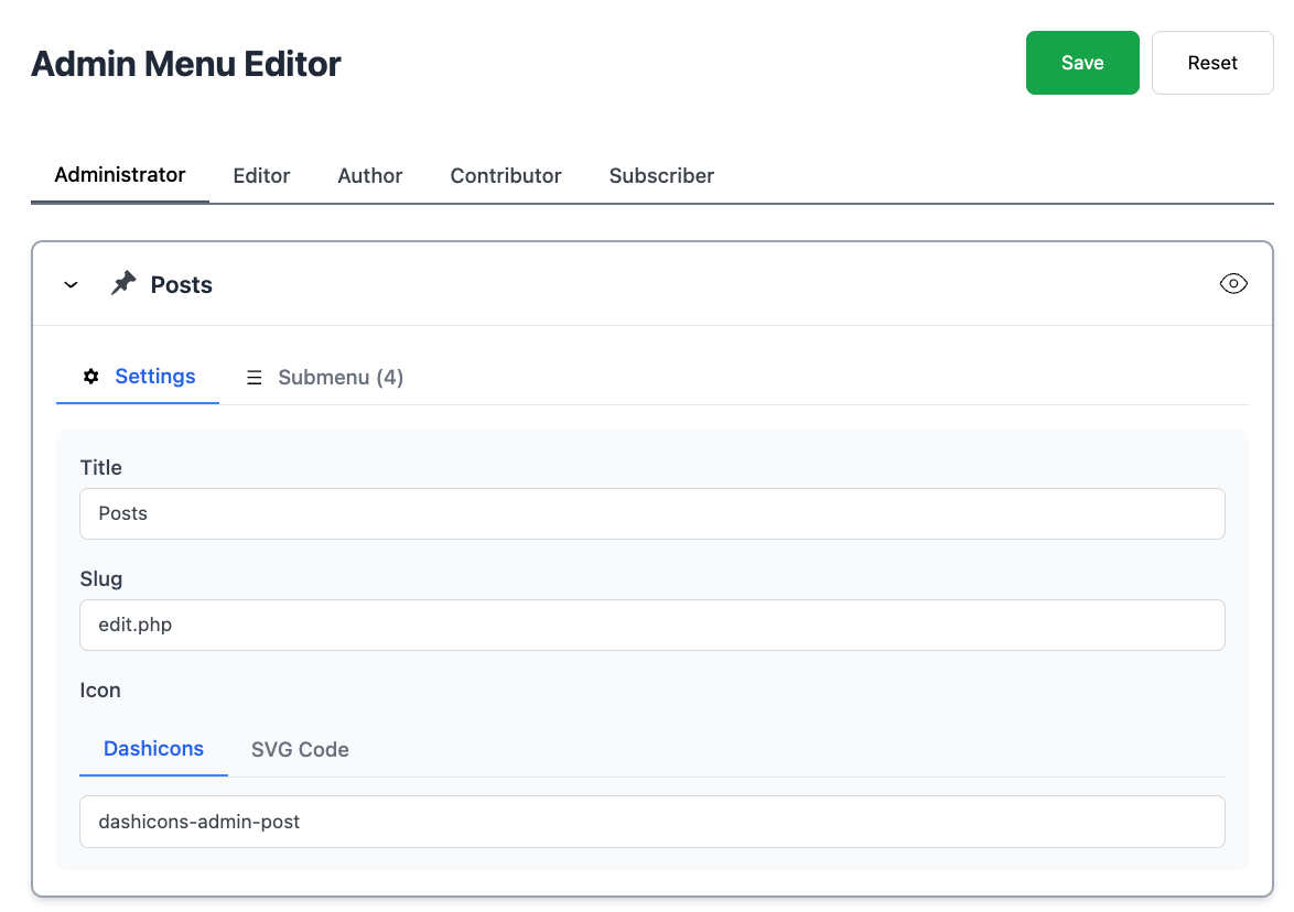 Change the icon (Dashicon or custom SVG)
