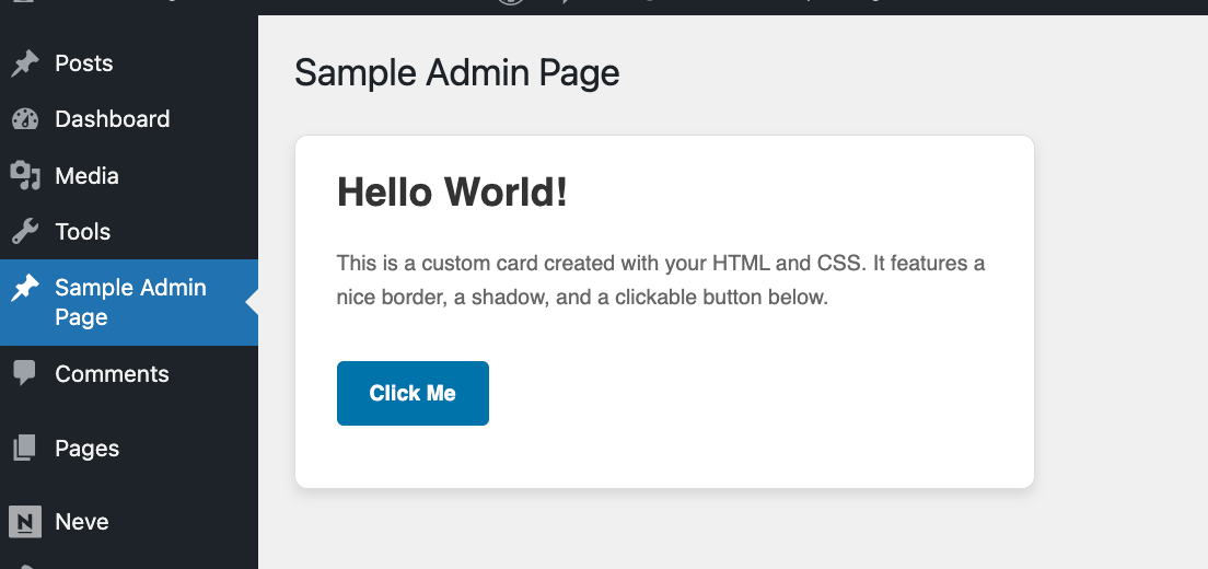 - The "Admin Pages" menu appears under the Neve top-level menu.