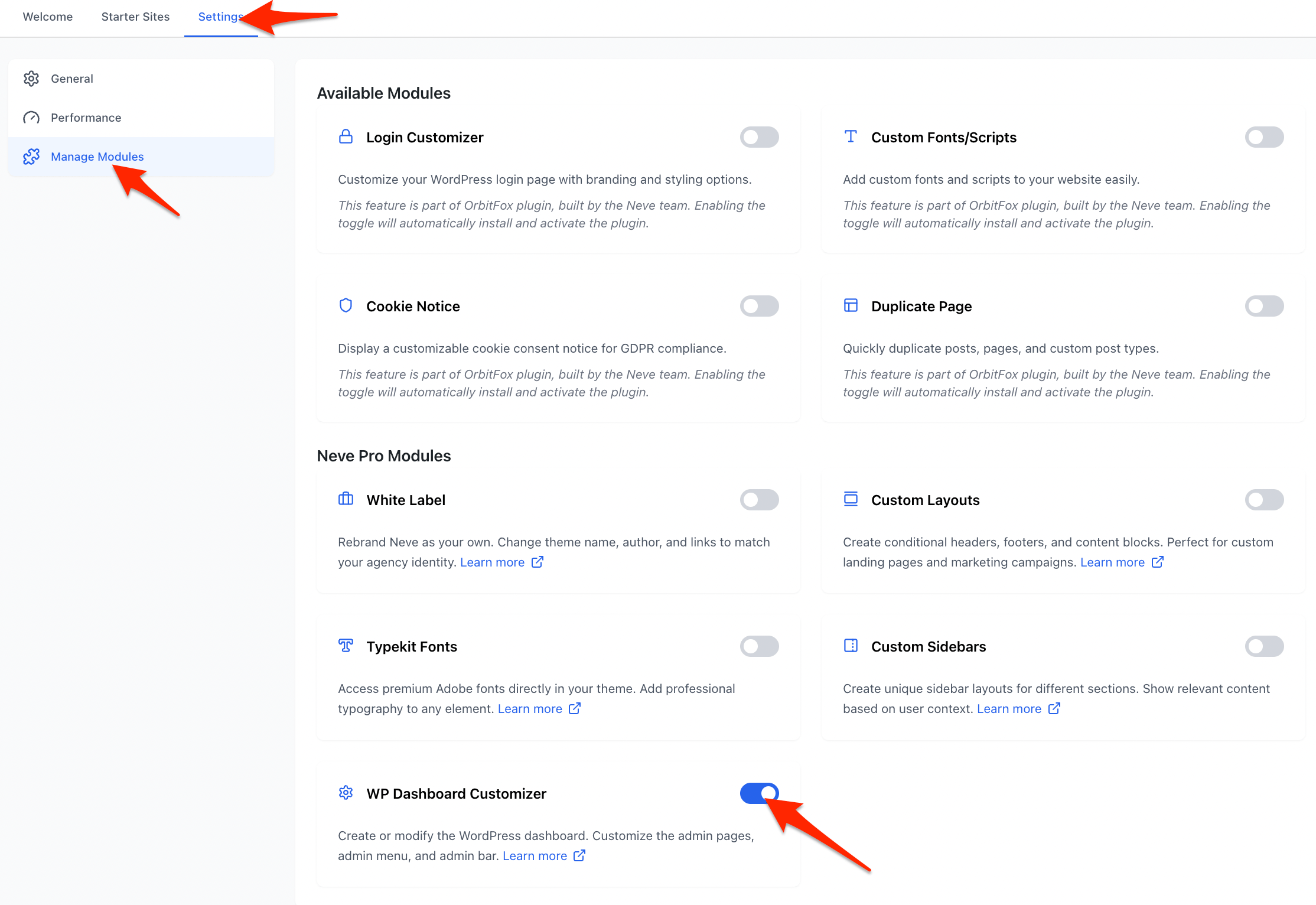 Important: The WP Dashboard Customizer Module is part of Neve PRO Agency plan.