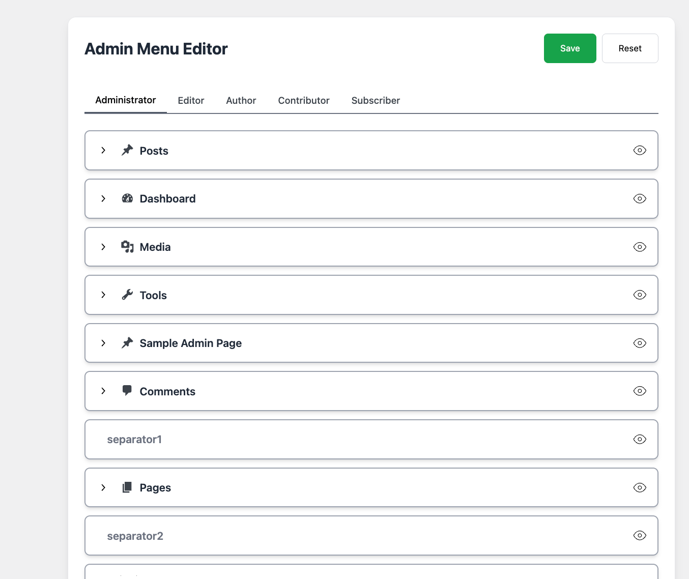 The user experience is similar to the Admin Menu Editor.