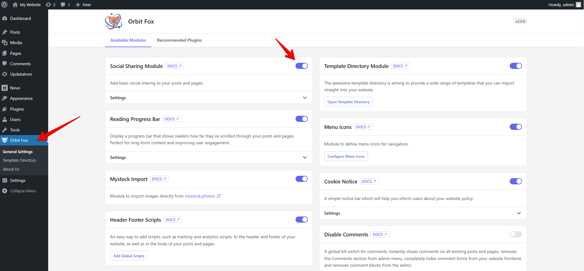 - Go to Orbit Fox → Modules.
