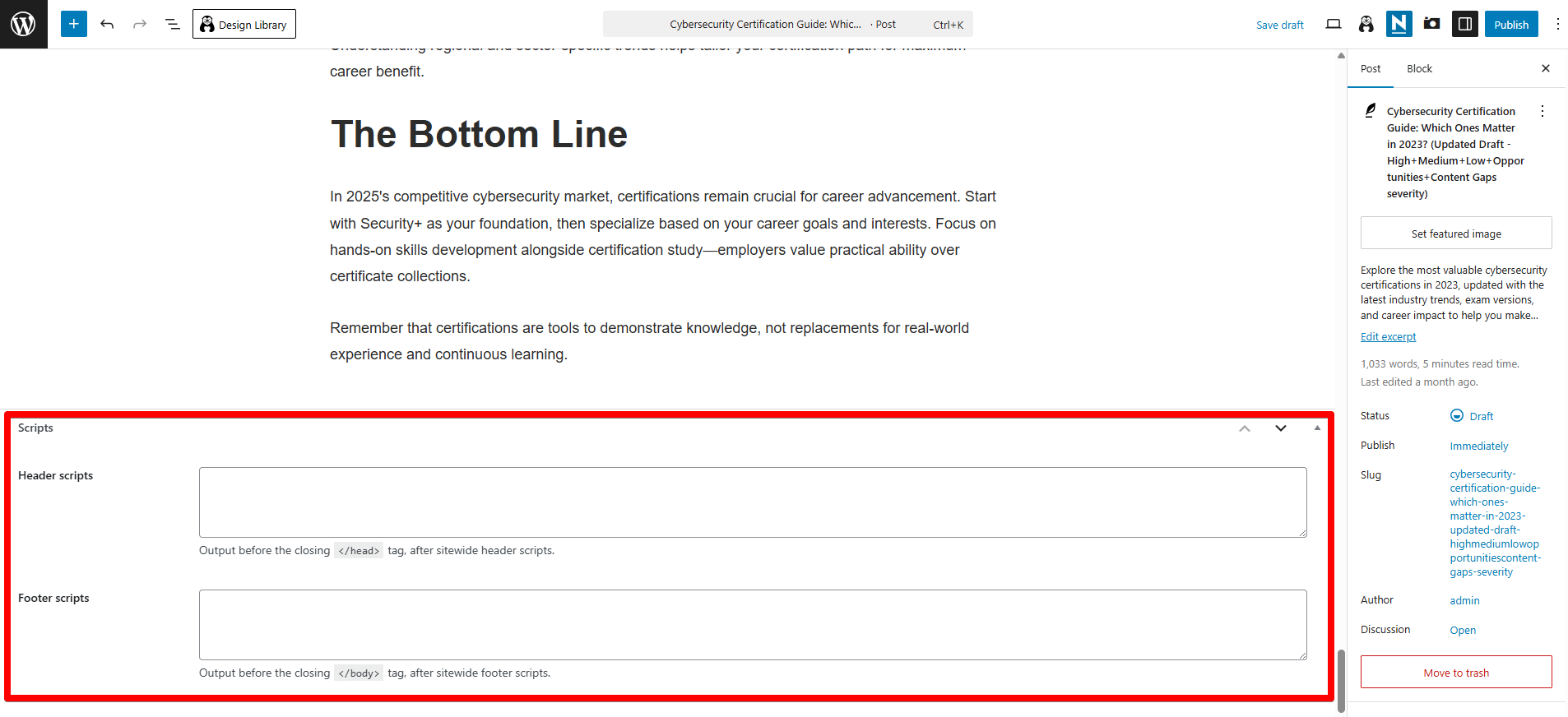 - Individual scripts that will load on specific posts or pages only. You can configure these directly in the post/page editor.