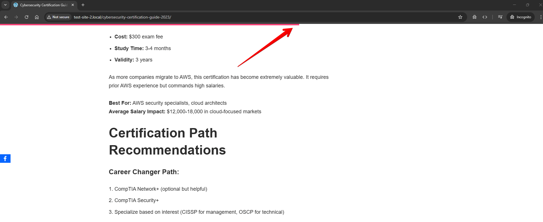 - The bar reflects progress through the page’s main content area; very short pages may show as complete quickly.