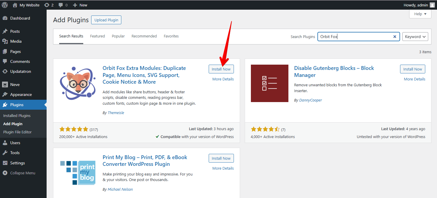 Click the Add Plugin button and type in Orbit Fox in the Search Bar.