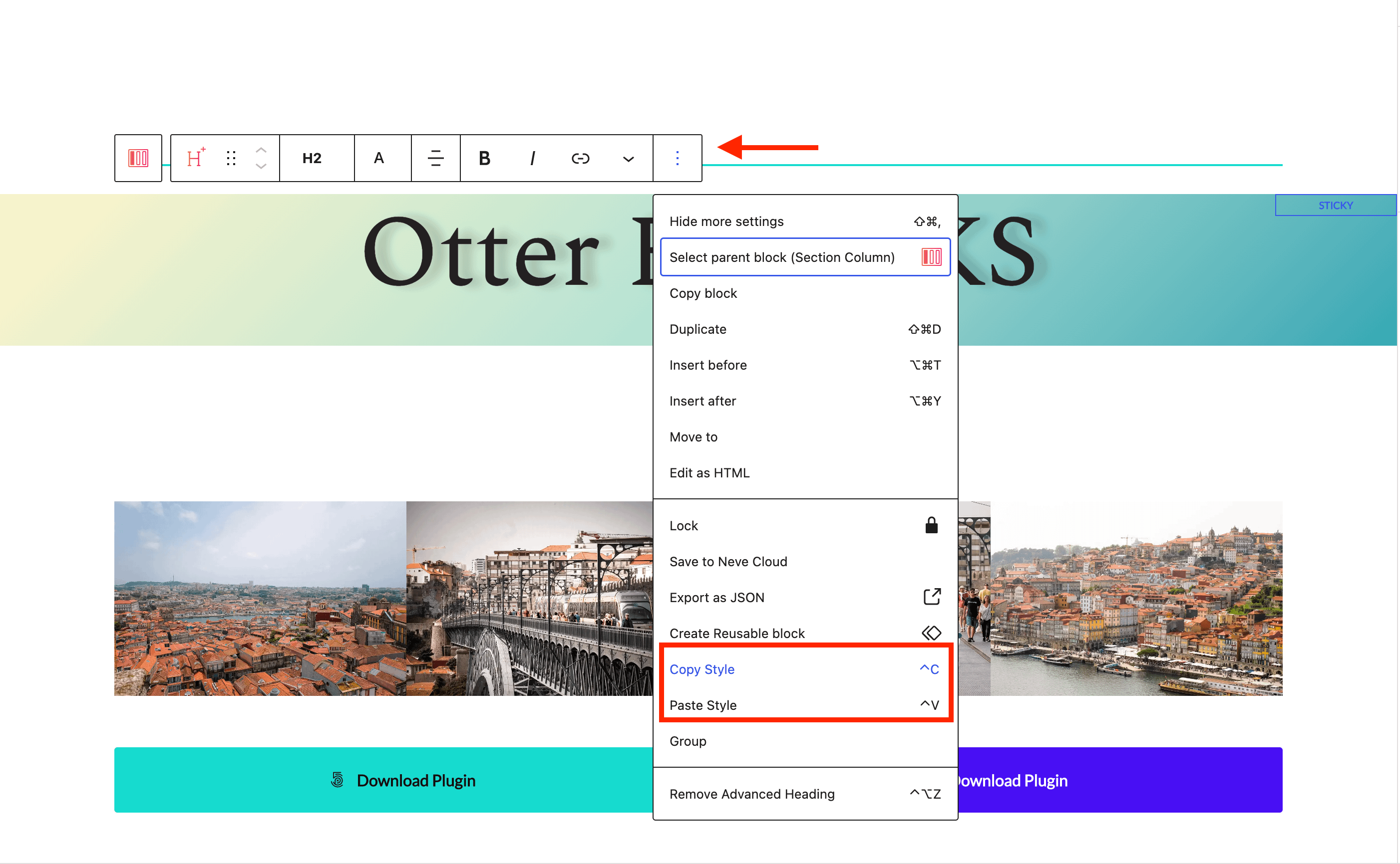 The Copy / Paste Styles feature of Otter Blocks is meant to help you duplicate the styles of the blocks with just a few clicks.