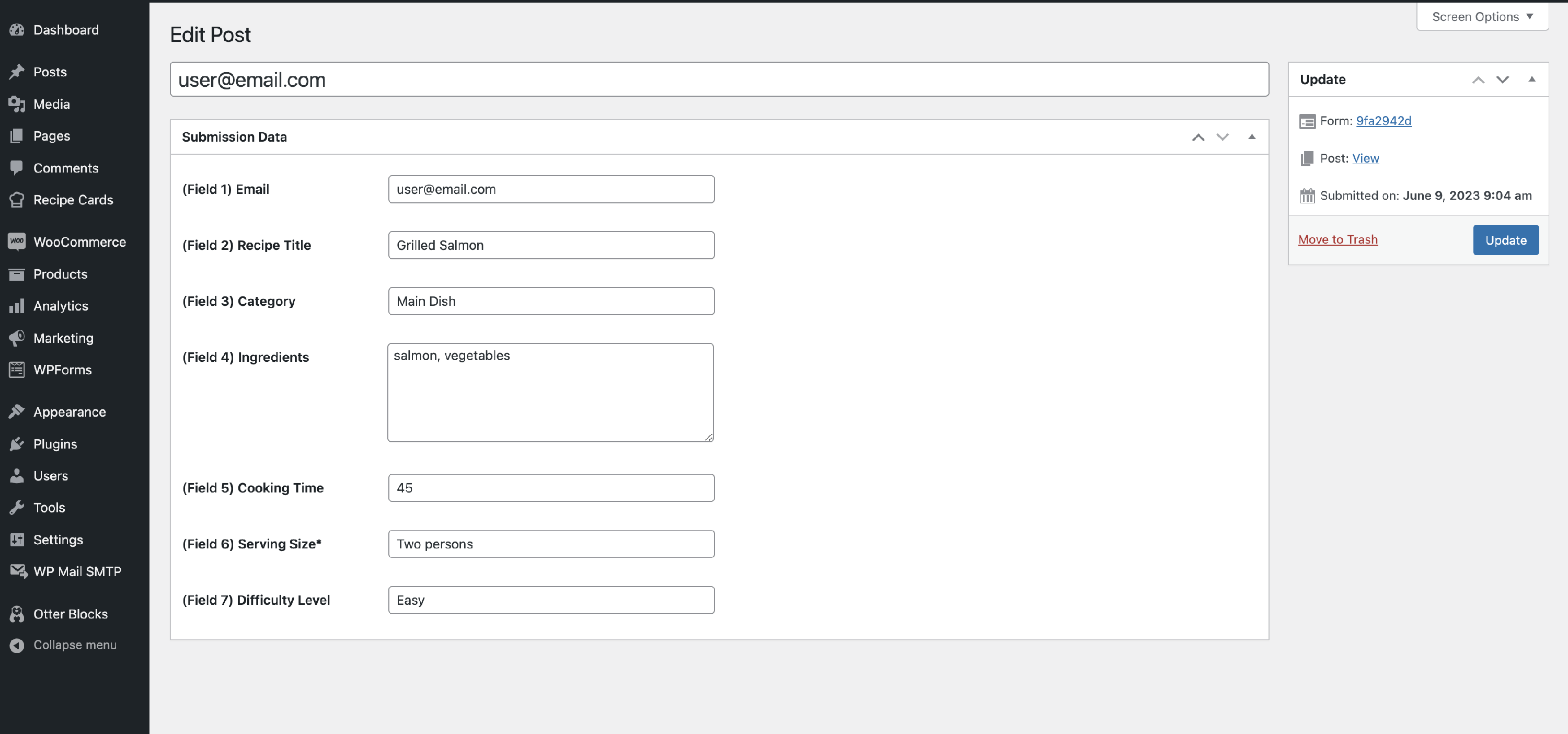 All the form submissions will be visible inside Dashboard > Otter Blocks > Form Submissions: