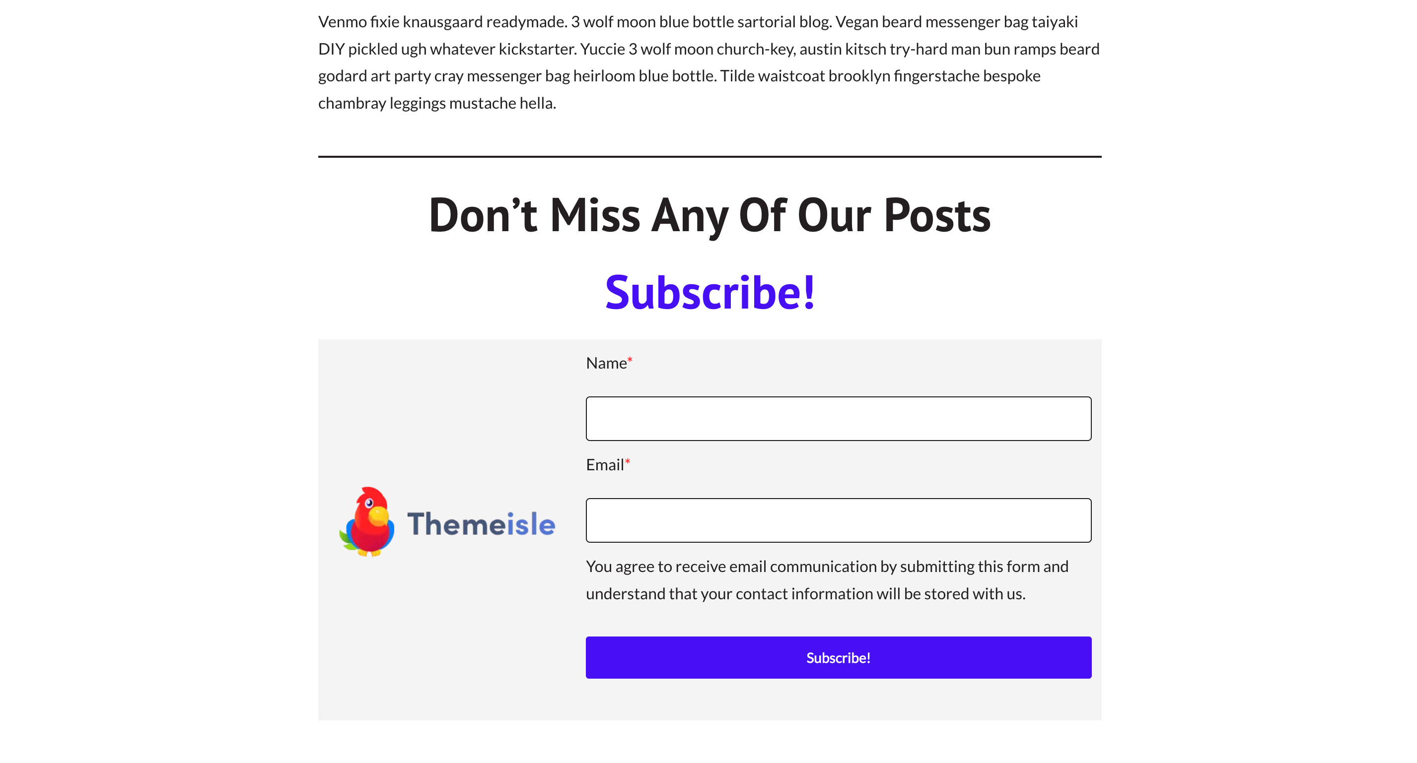 Allow your visitors to remain up to date using a subscribe form that ensures their engagement.