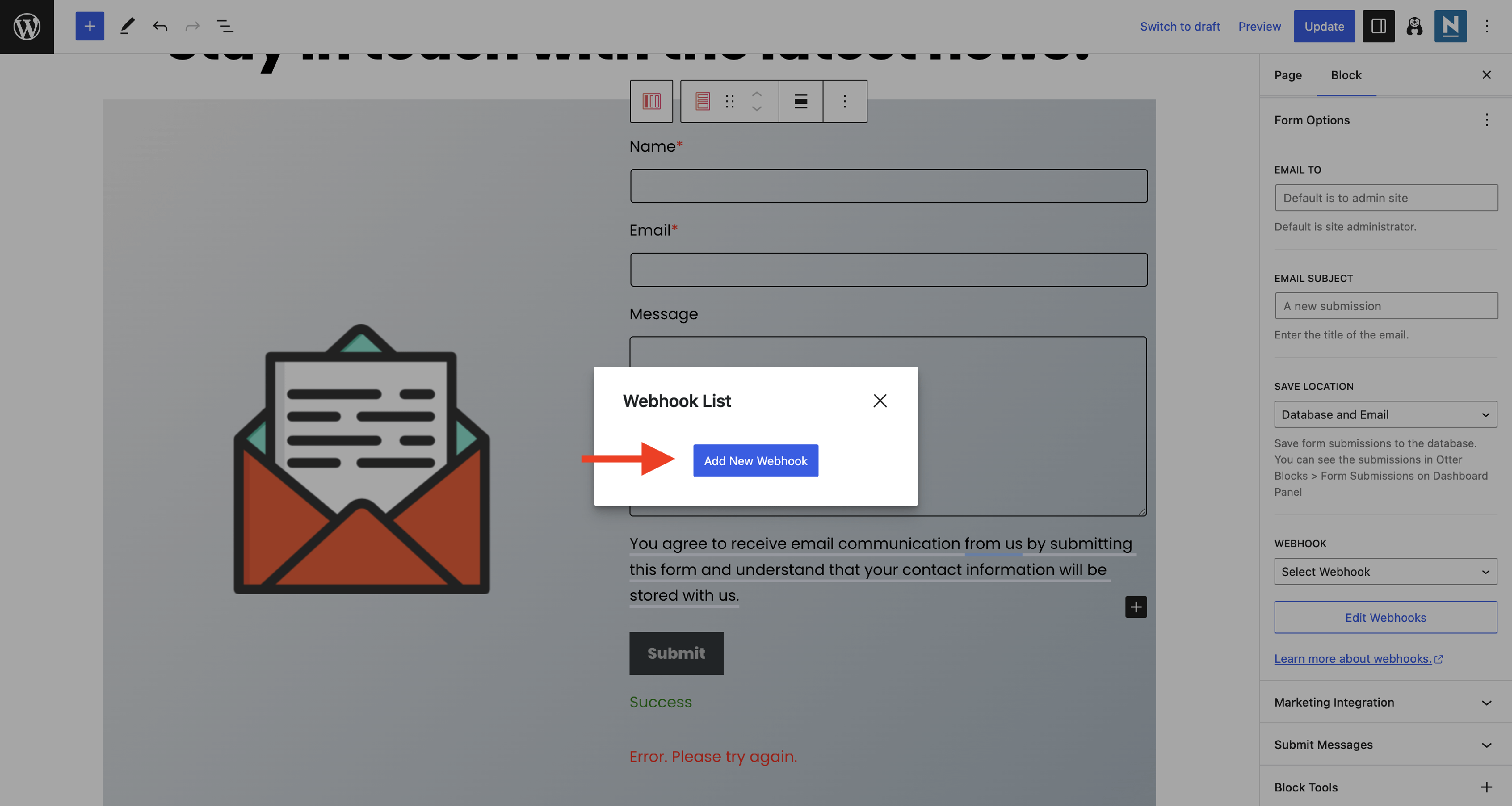 Allow your visitors to interact with you using the dedicated Otter Form blocks: