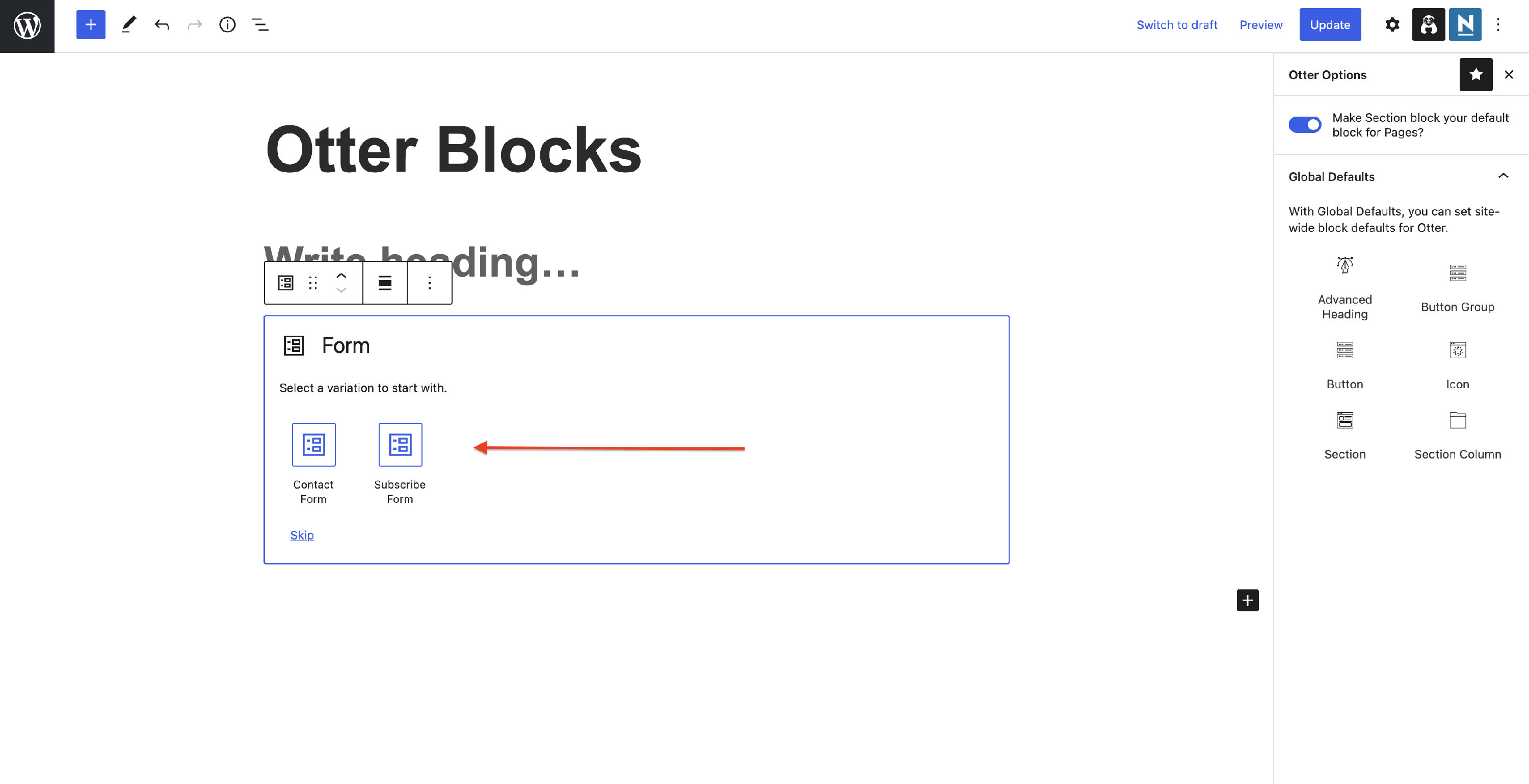 ๐ Note: If you choose to skip, the Contact form will be added by default.