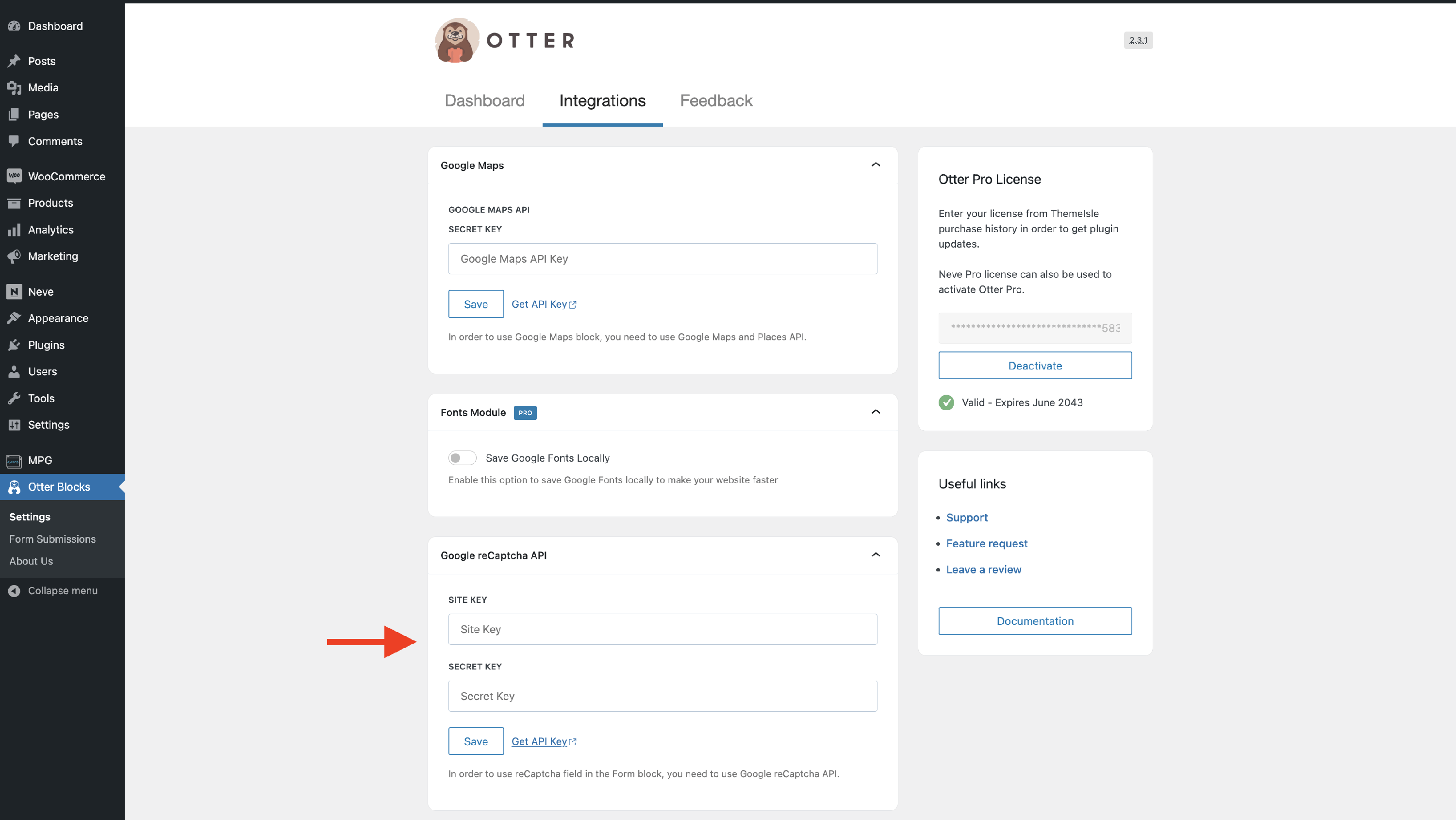 ๐ Note: The reCaptcha in Otter will work only after you create an API key and insert it in