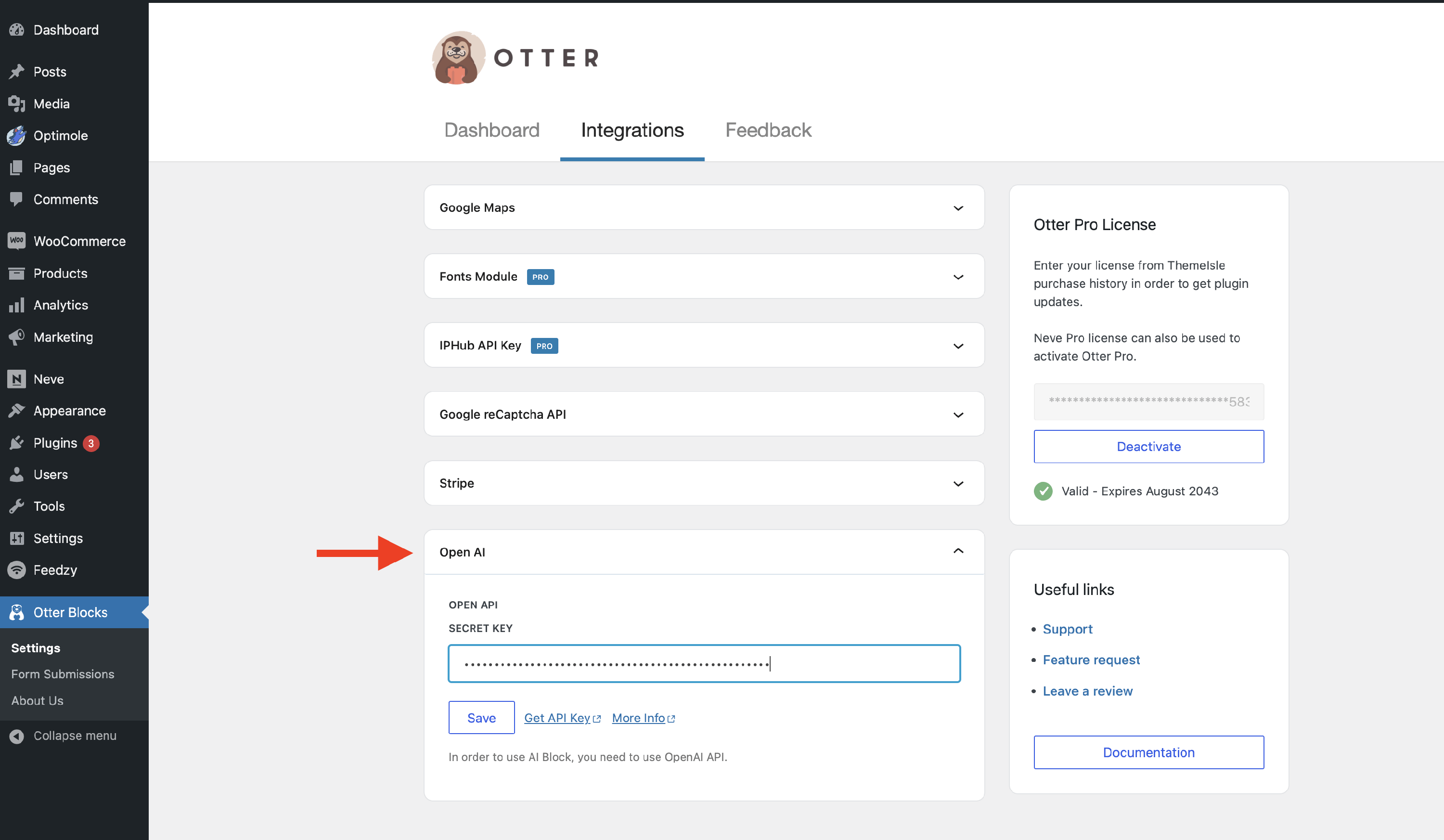 1 After copying the API key, go to your WordPress dashboard.