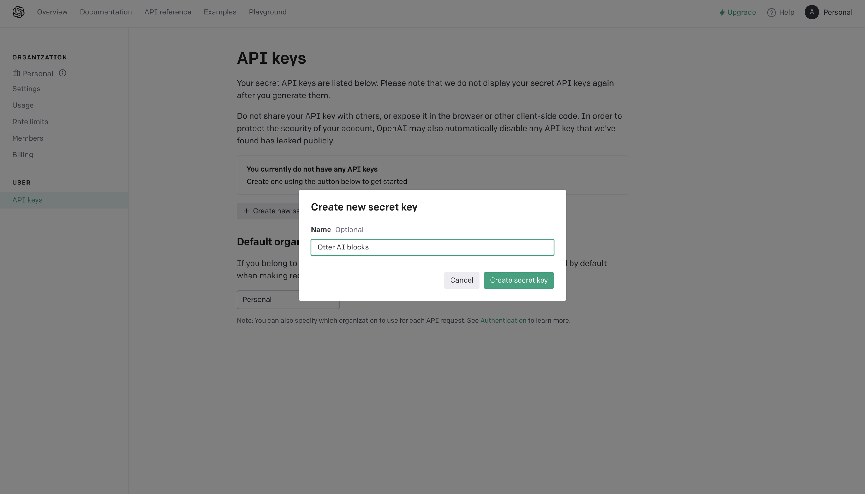 Otter has introduced AI-based blocks that work with the OpenAI API key. This article helps you find and use the API key in the Otter Blocks.