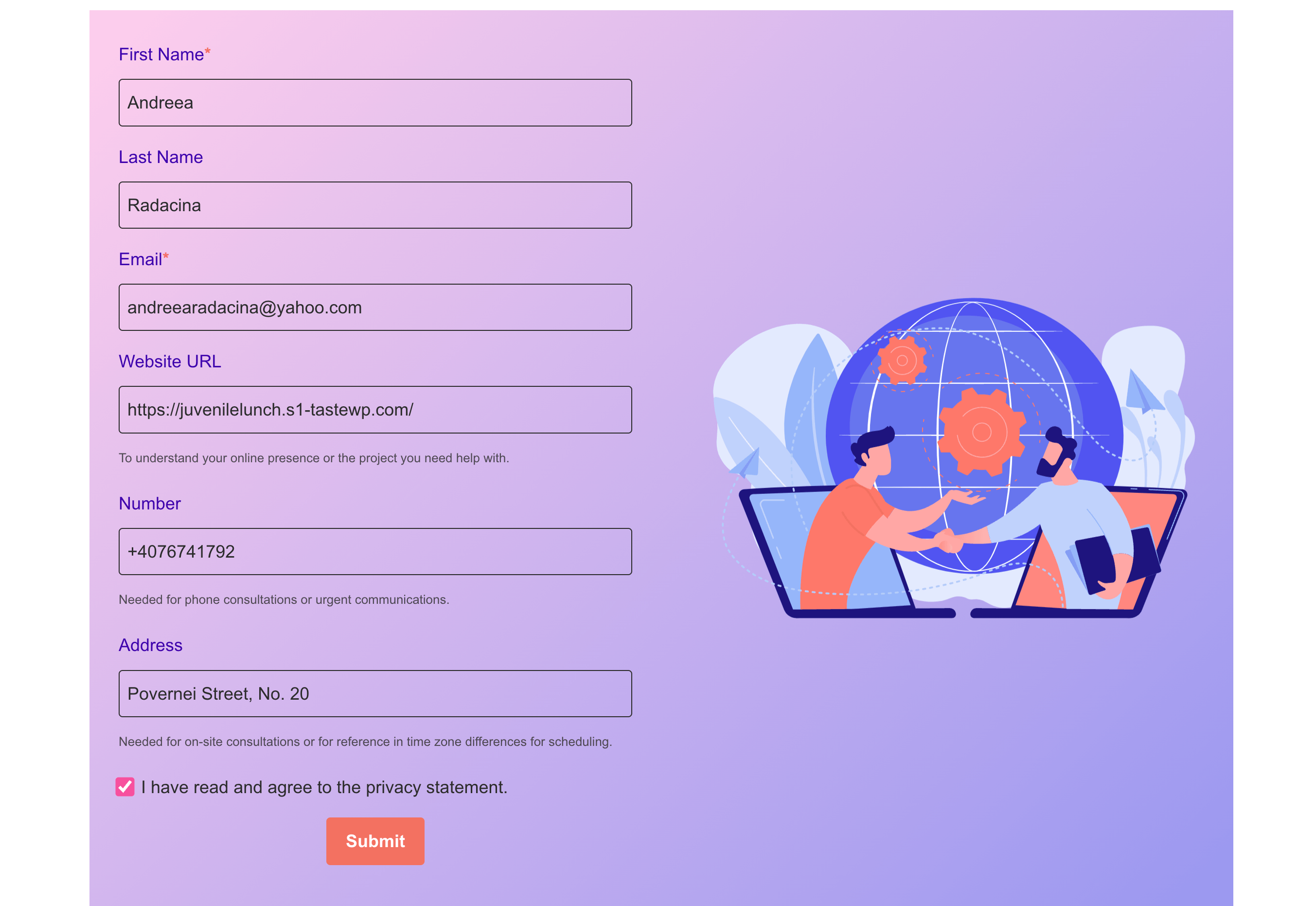 5 Save the settings and go to fill in the form in an Incognito window to test how it works: