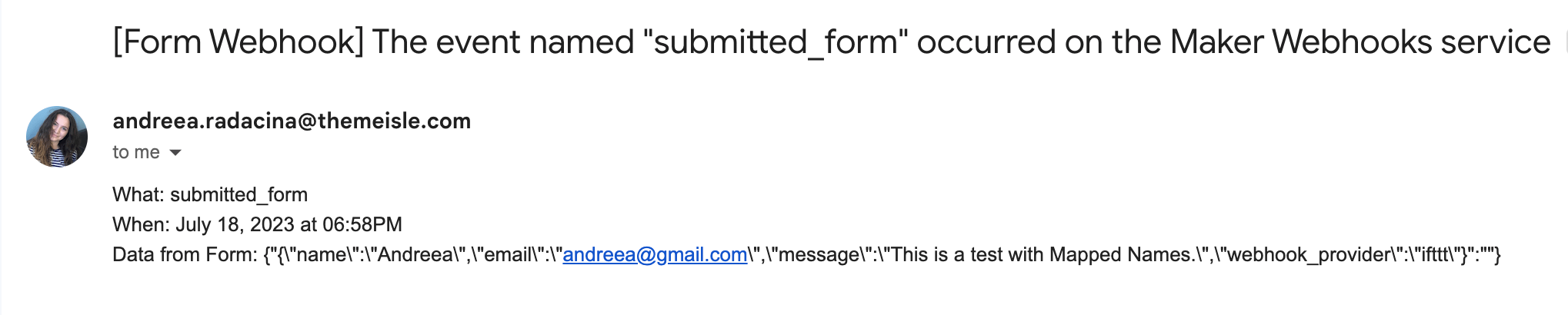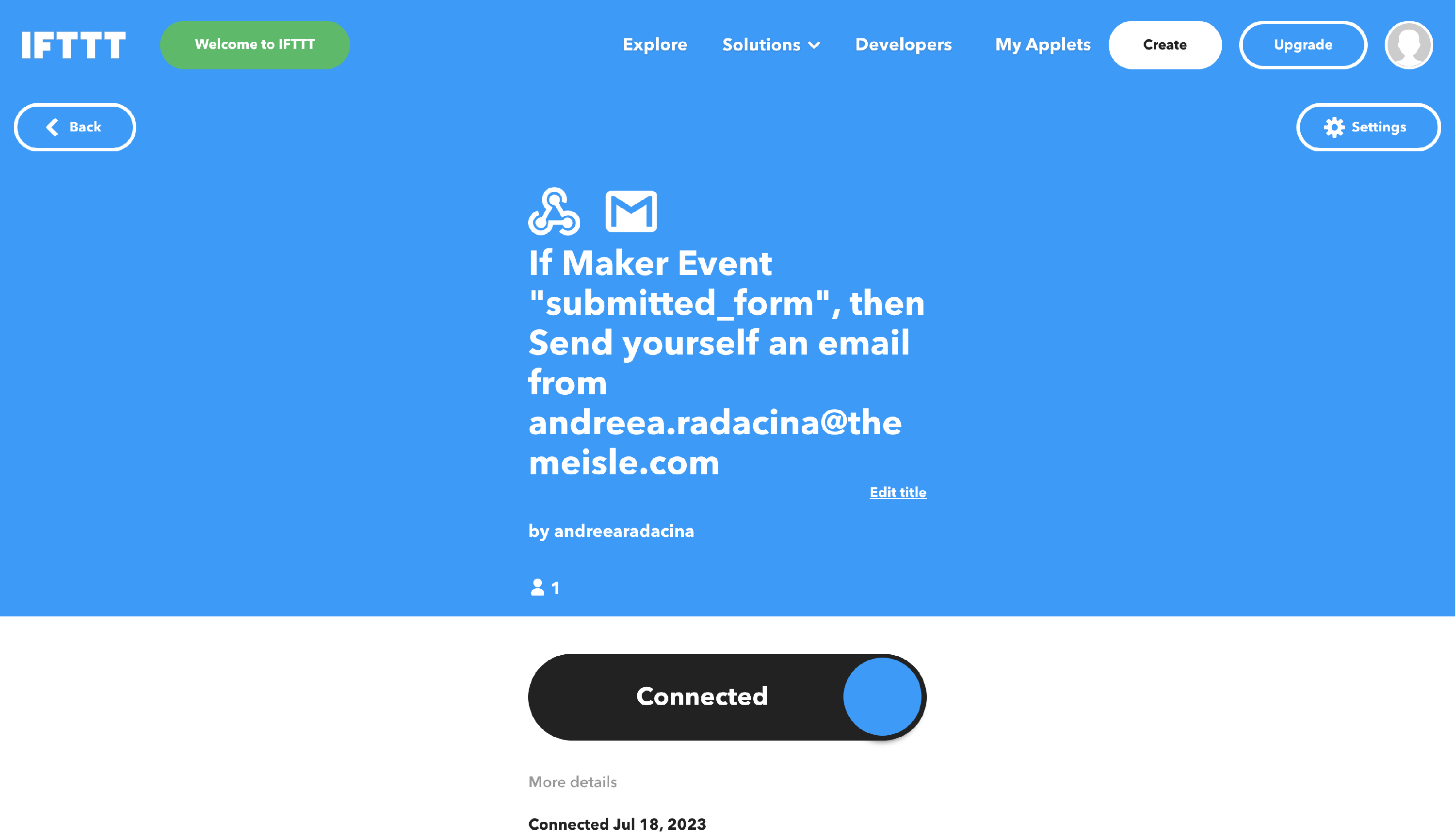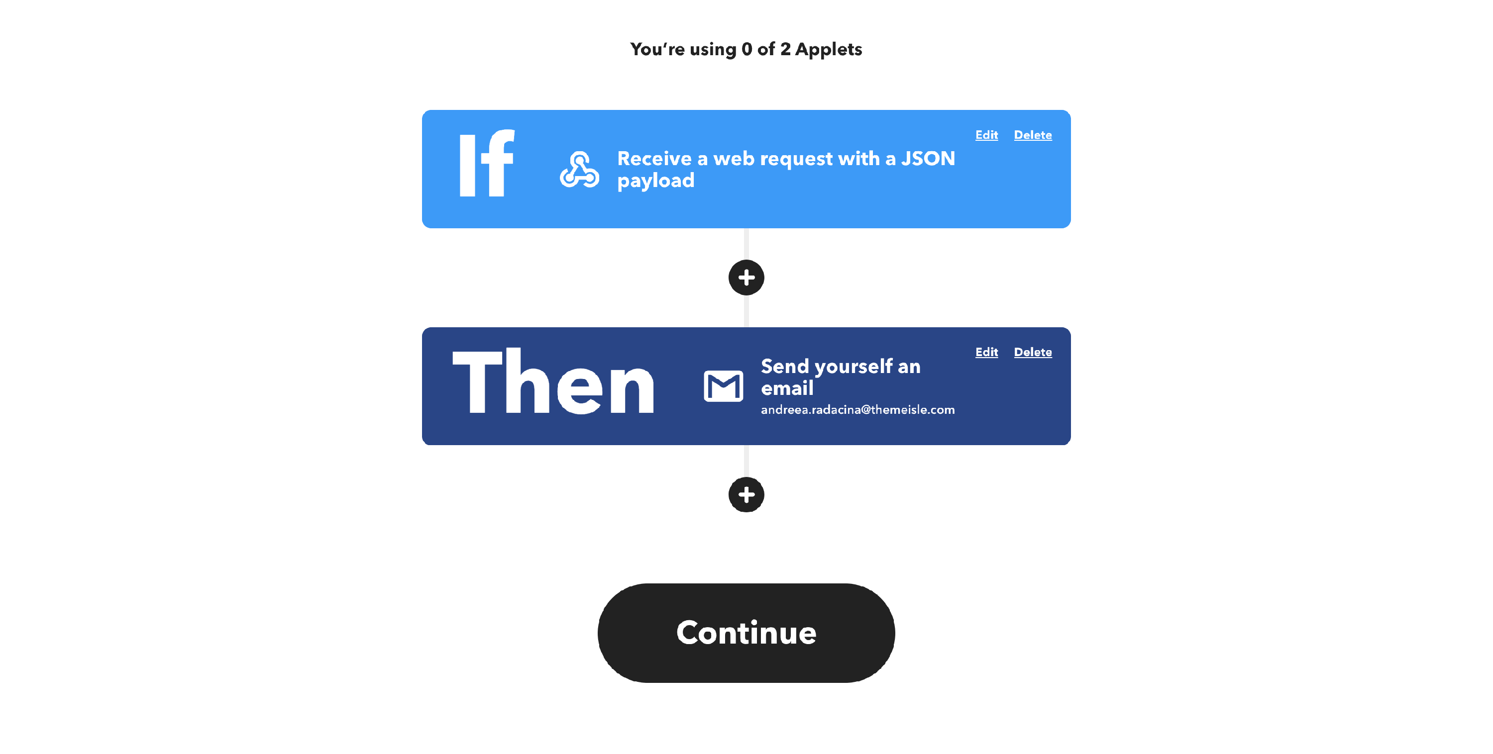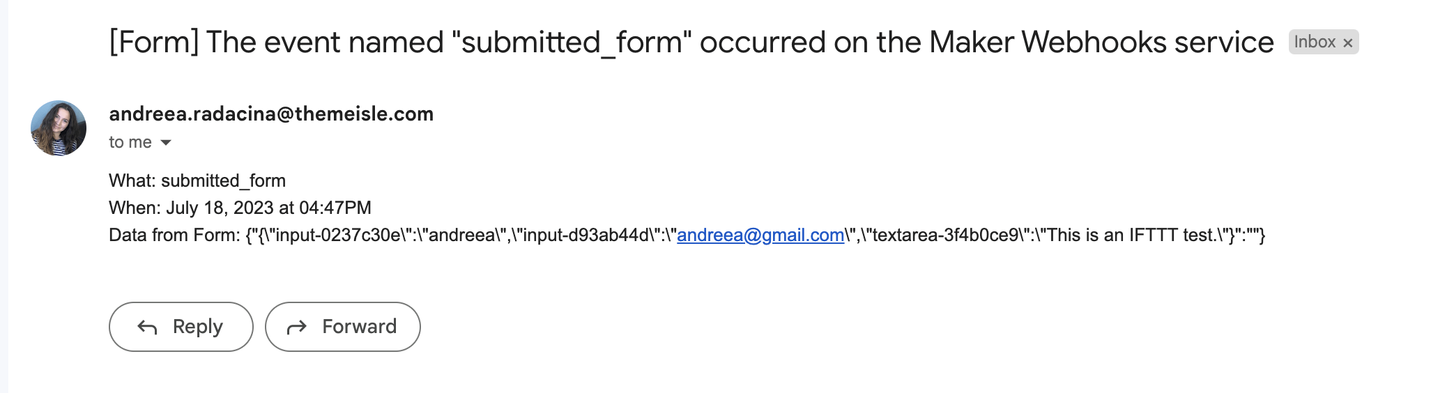 Similar to the connection with Zapier, we will demonstrate a connection with IFTTT. In our case, every time the form is submitted, we will get an email on Gmail.