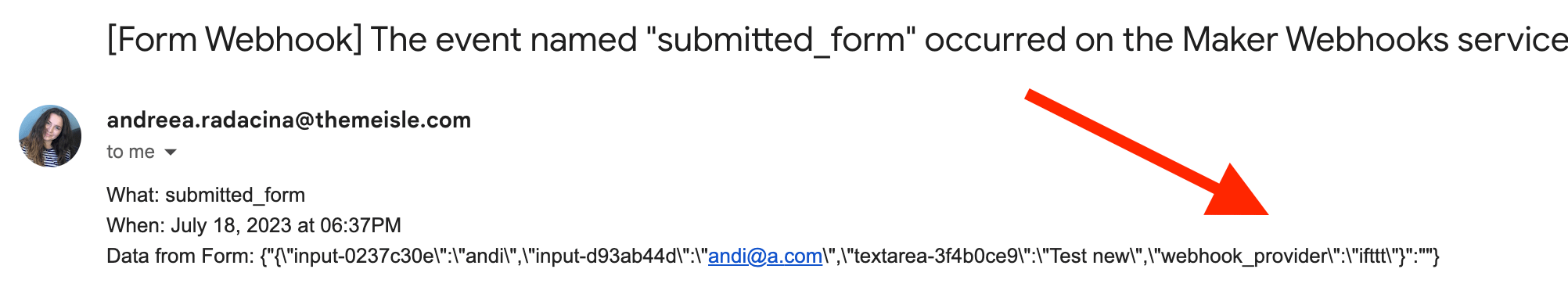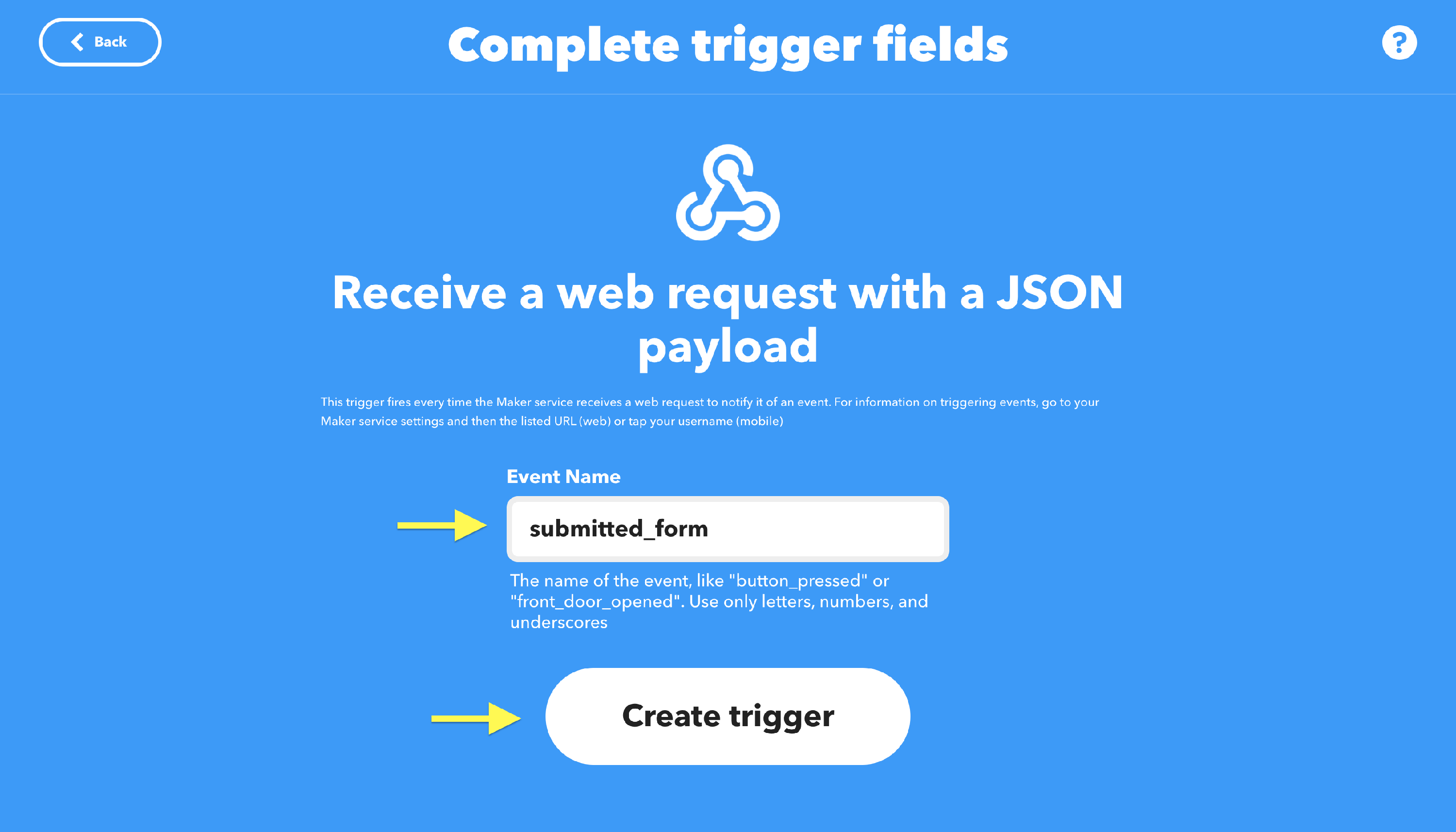 https://maker.ifttt.com/trigger/{event}/json/with/key/AjdeTuqvKTHtbInv4xa8u3(...)13Replace the {event} with your event's name (in our case: submitted_form).