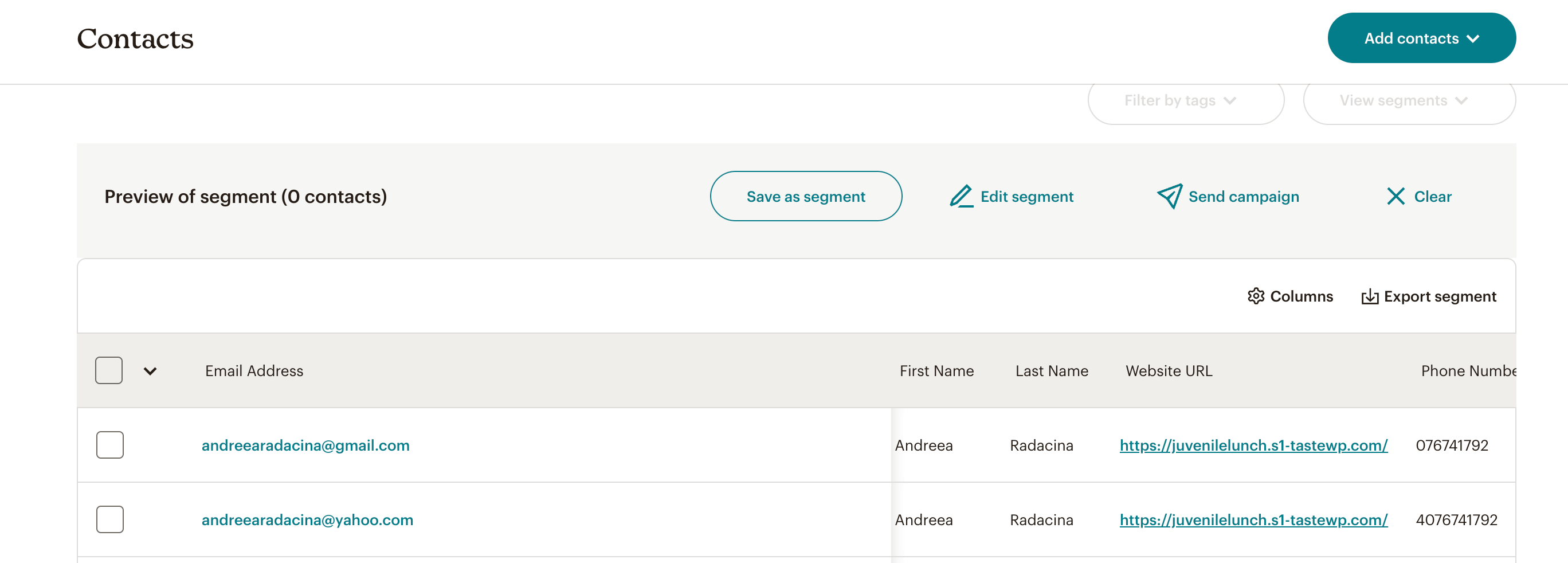 6 Once the responses are submitted, go to Mailchimp > Audience > Contacts to see the values.