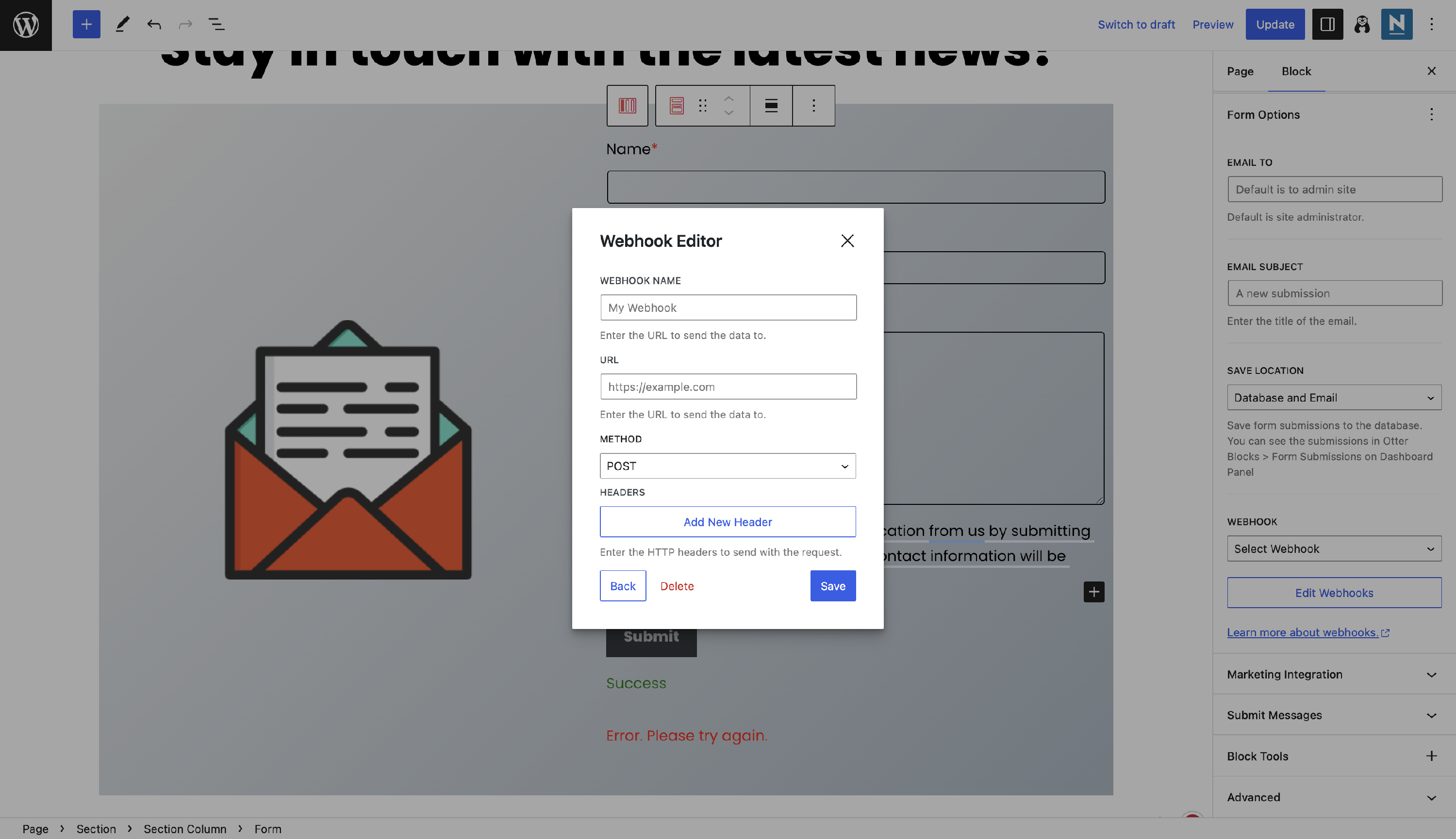 add_filter( 'otter_form_webhook_payload', 'mark_ifttt_provider', 10, 3 );2 Make the desired changes and paste the code into the currently active theme functions.php file or using Code Snippets.