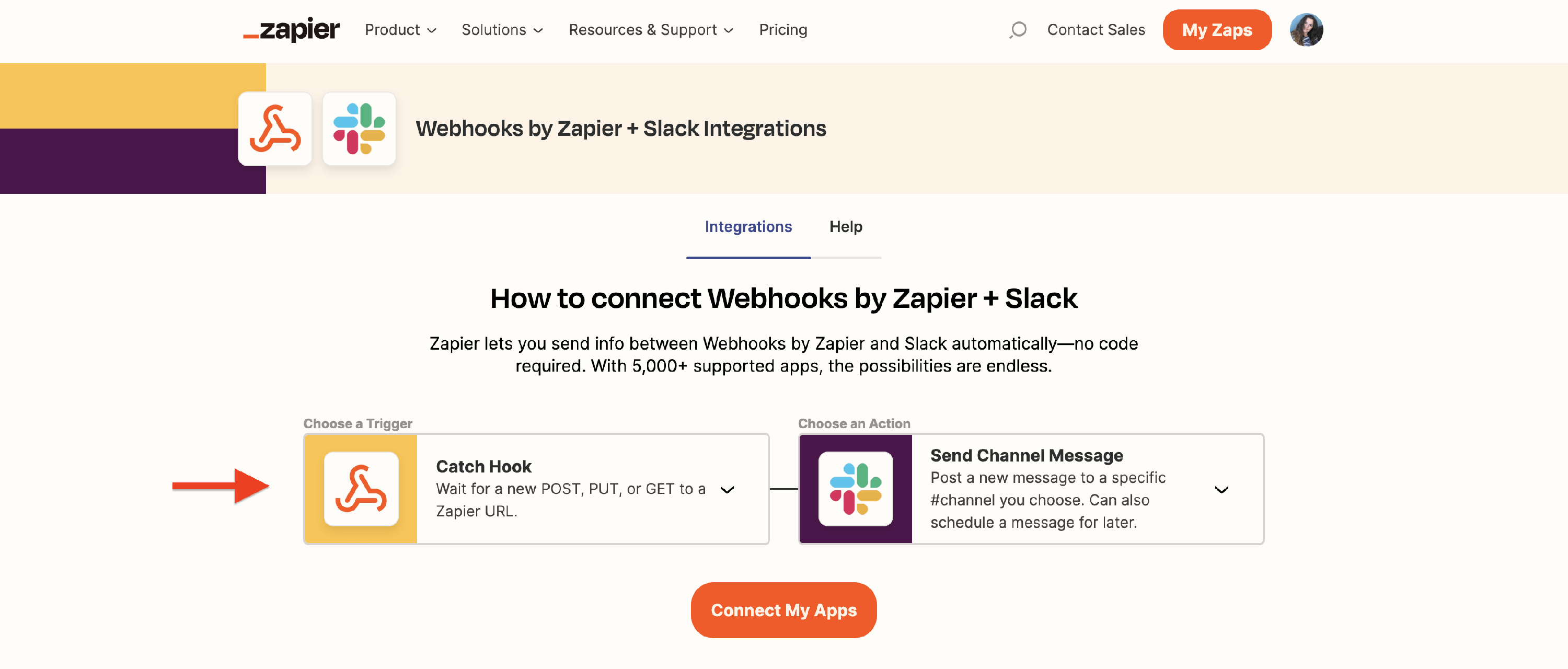 2 On the Webhook Integrations page, search for the external app (e.g. Slack).