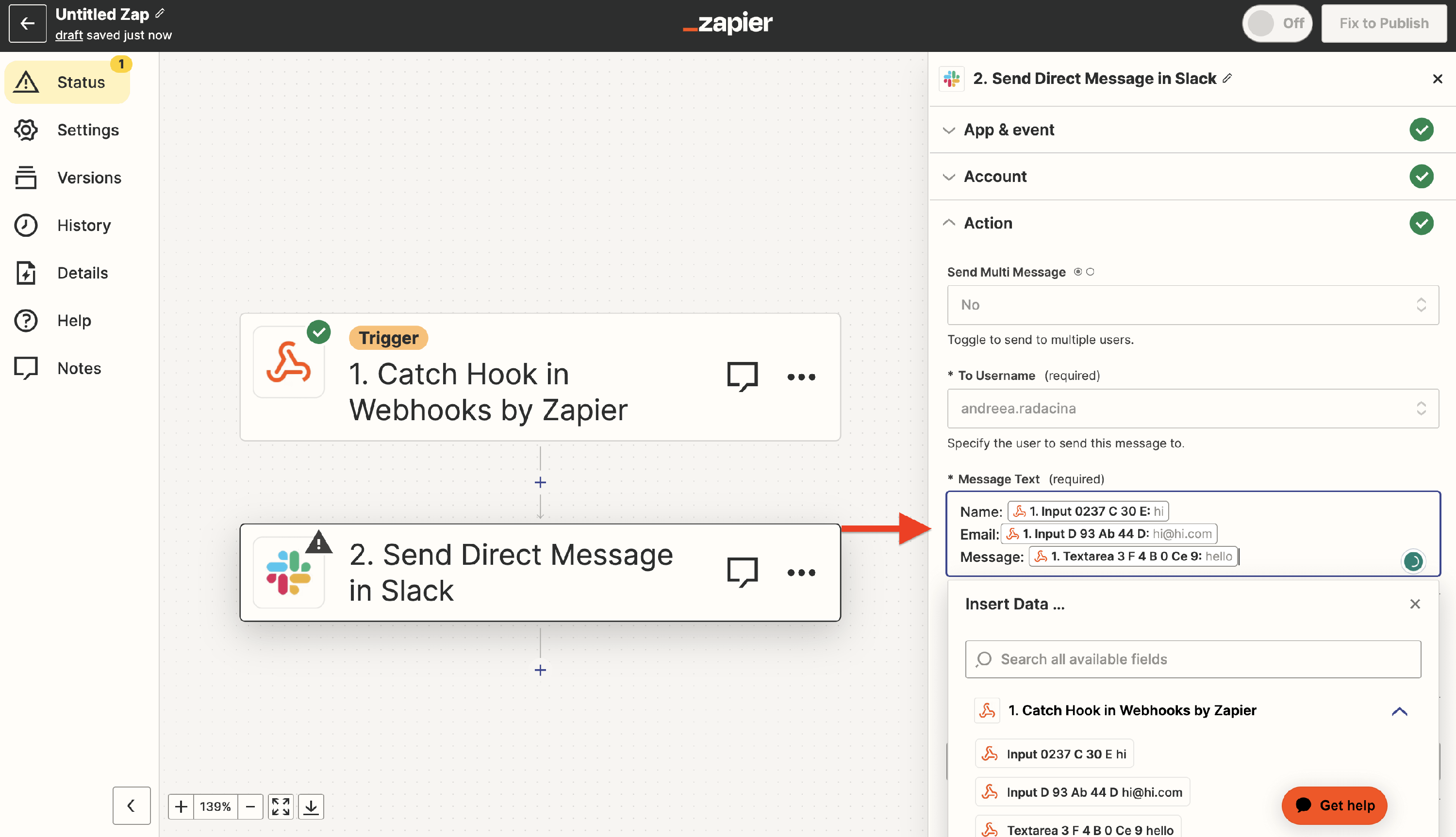 In this example, we will establish a connection between the form submissions and our Slack workspace so that any time an answer is submitted, a Slack message will appear.