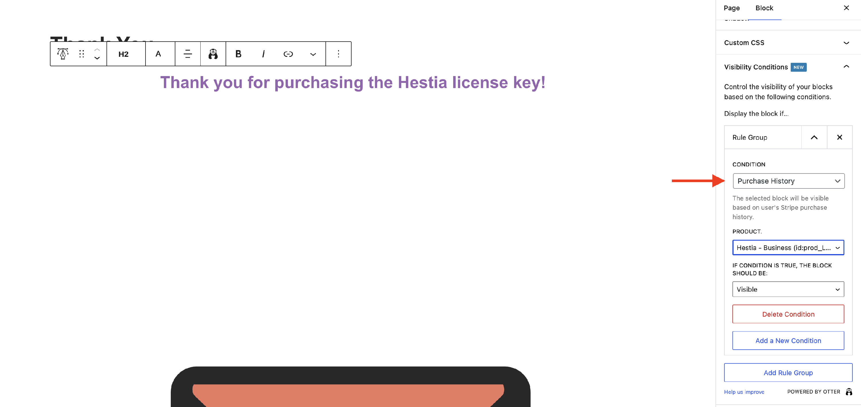 - set up a thank you page that will work based on visibility conditions. For the example above, we have configured this page: