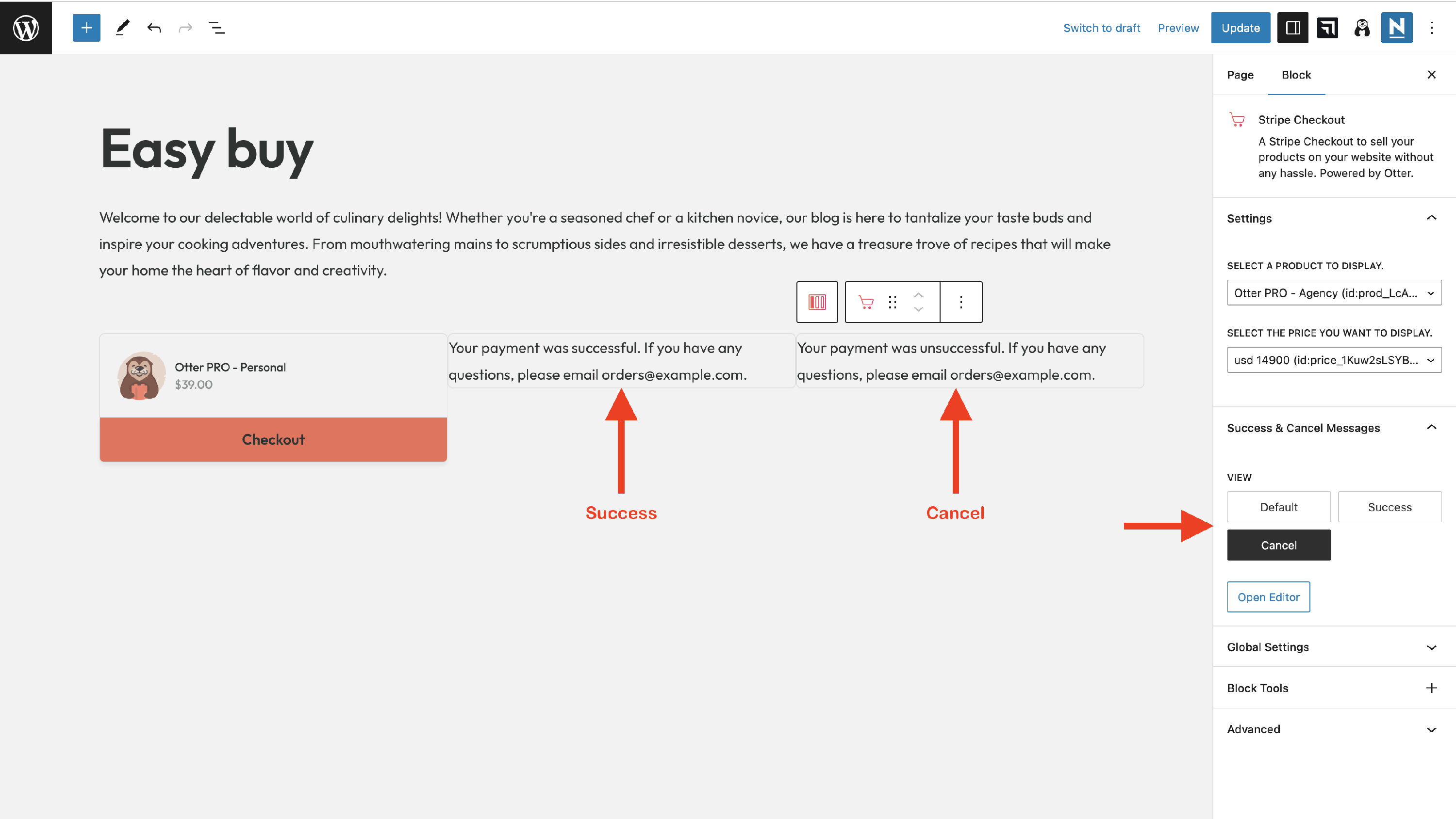 📝 Note: If you have encountered errors when using the Stripe Checkout block, please check this doc.