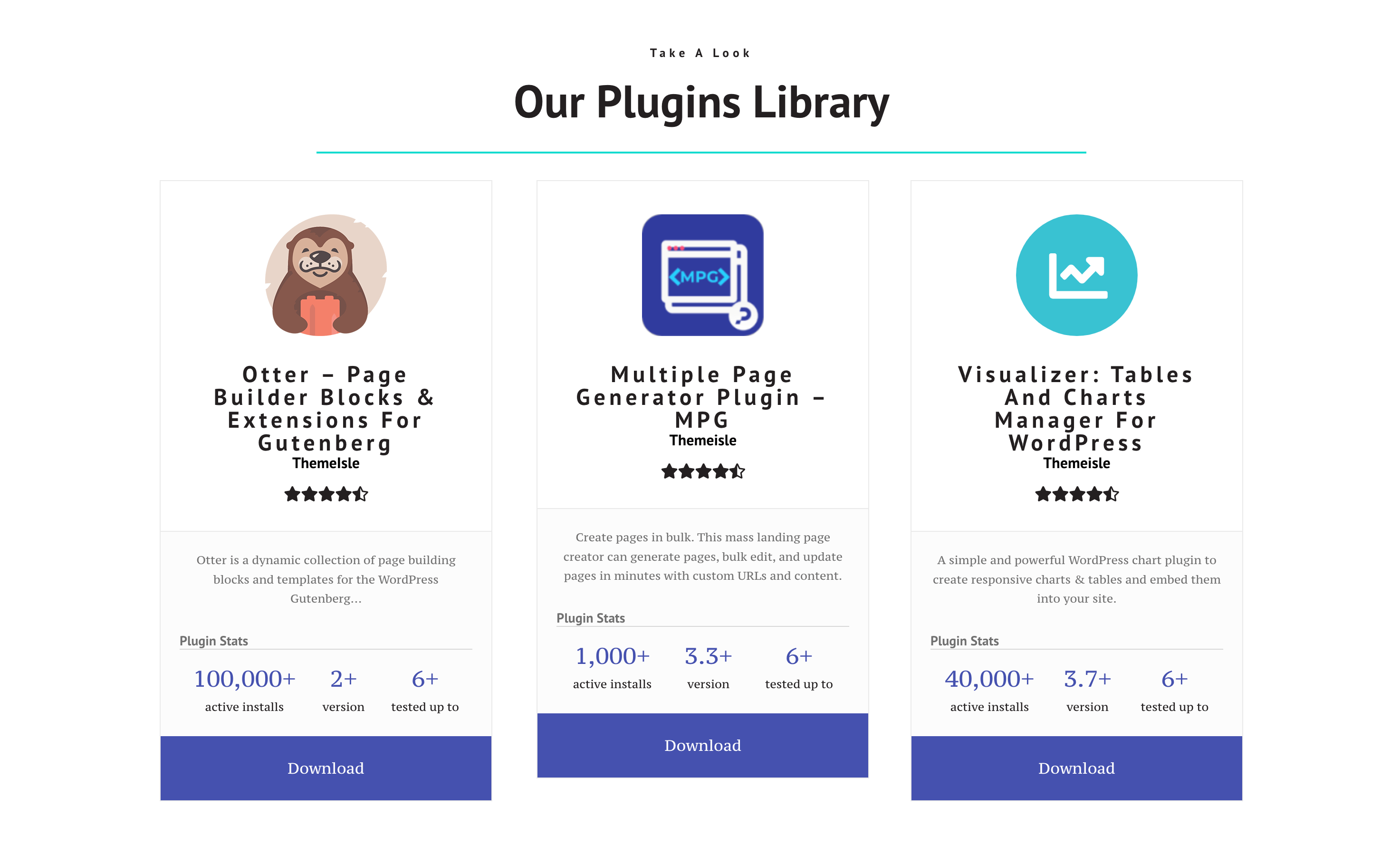 - create a presenting section with the products (plugins) that your company provides