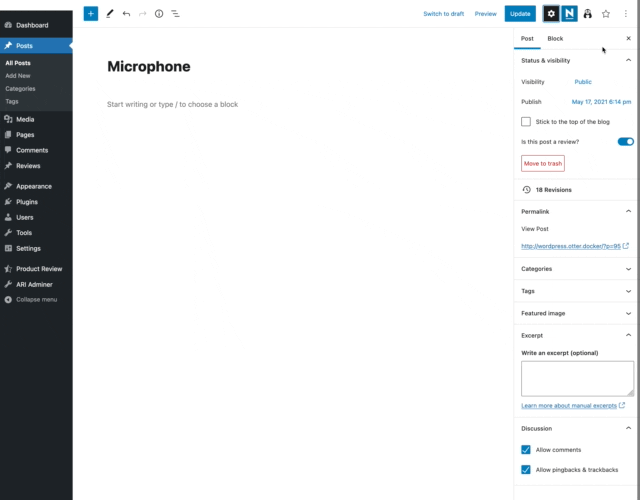 Now you can visit any page that has a product review. From there, there are two ways to migrate from WP Product Review to Otter's Product Review block: