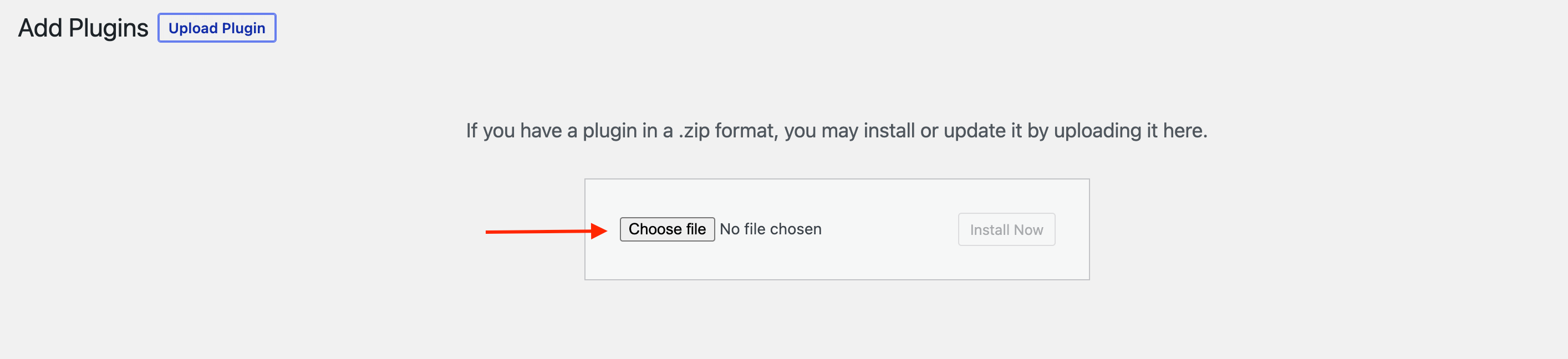 4 Navigate to Dashboard > Plugins > Add New and upload the .zip that you previously downloaded.