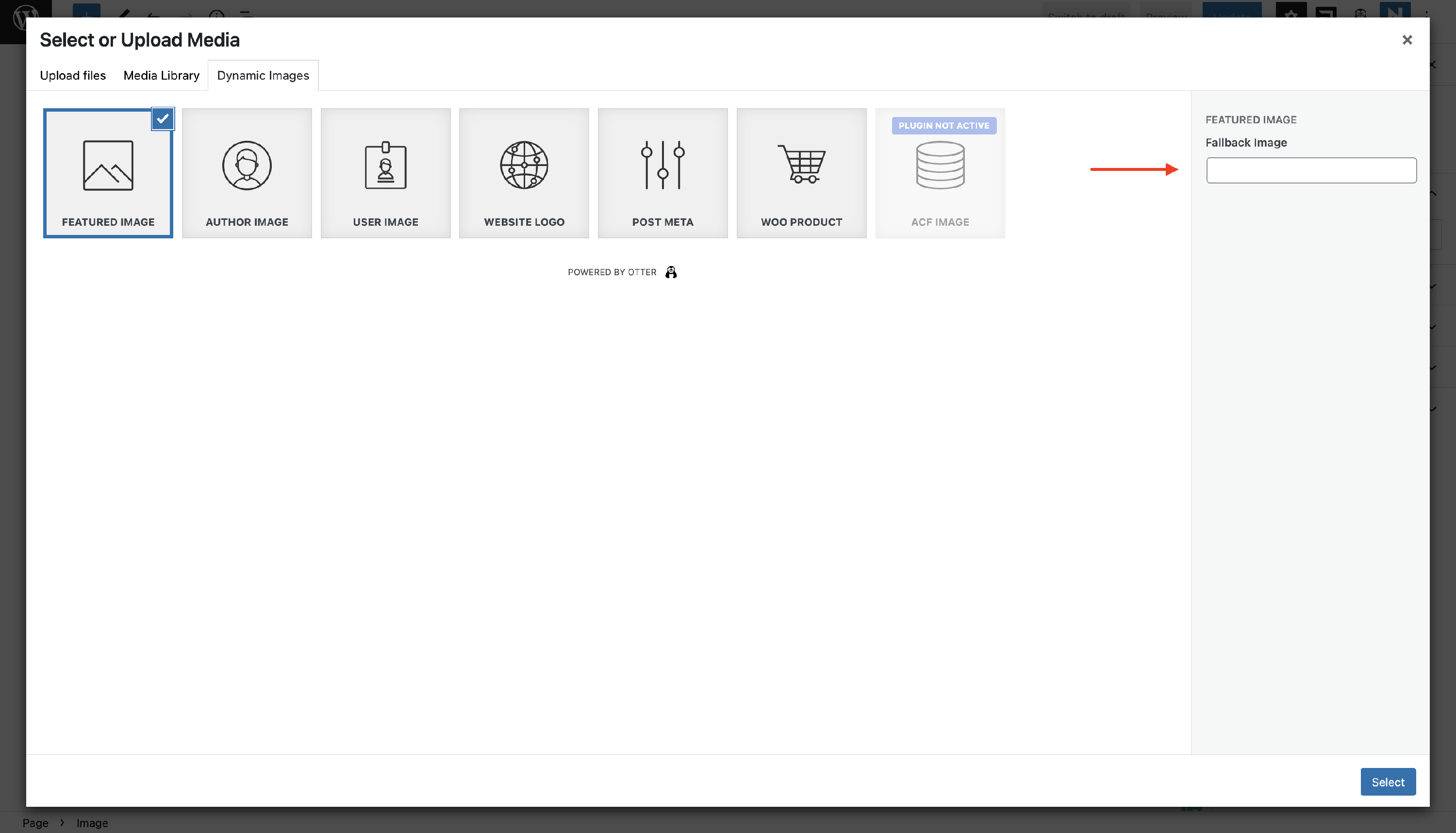 In order to do this, open the editor, add the Image block, and click on the Upload / Media Library button. It creates a third tab called Dynamic Images, from which you can start adding the desired elements: