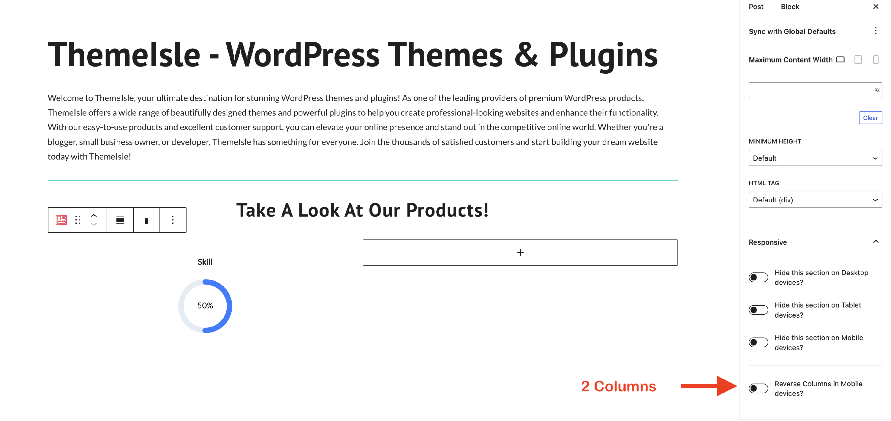 - Columns & Layout - change the number of columns, which will unlock multiple layout options.