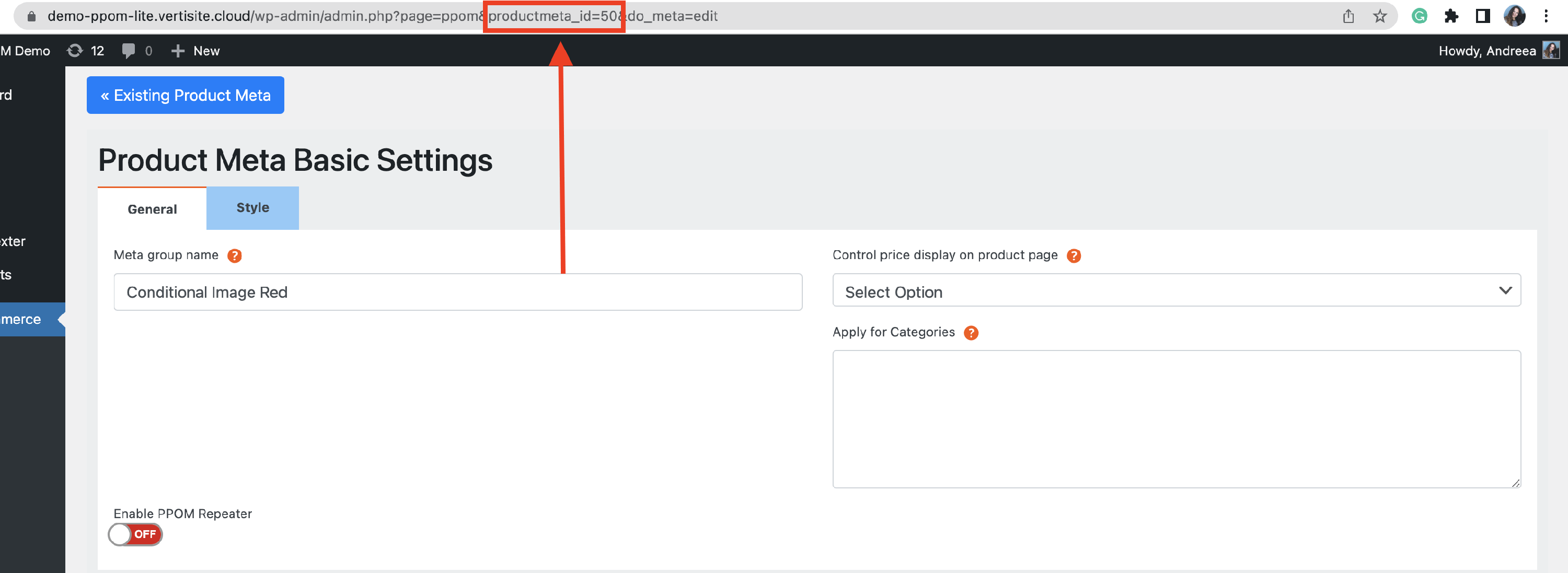 4Save the changes, then copy the meta ID from the URL.